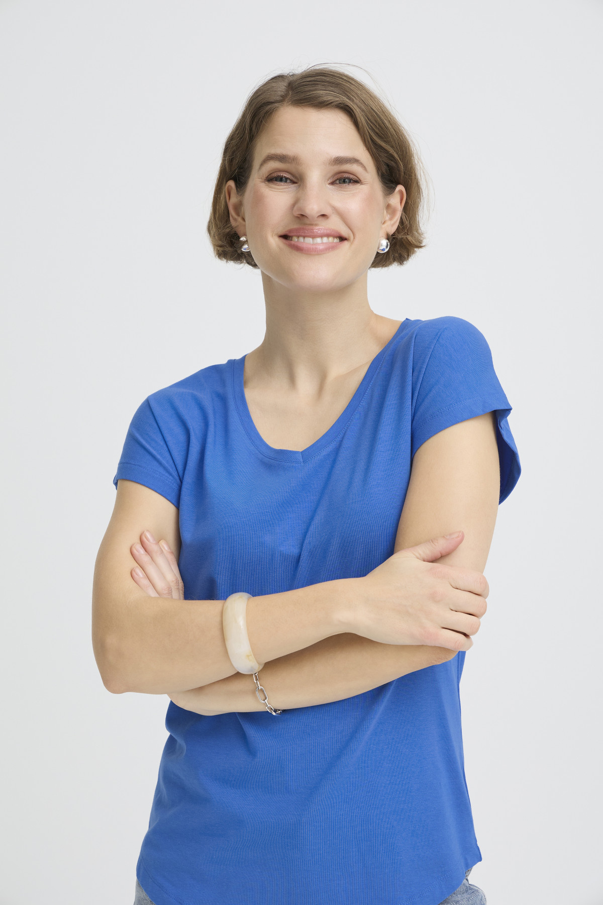 T-shirt bleu col V B.Young en modal