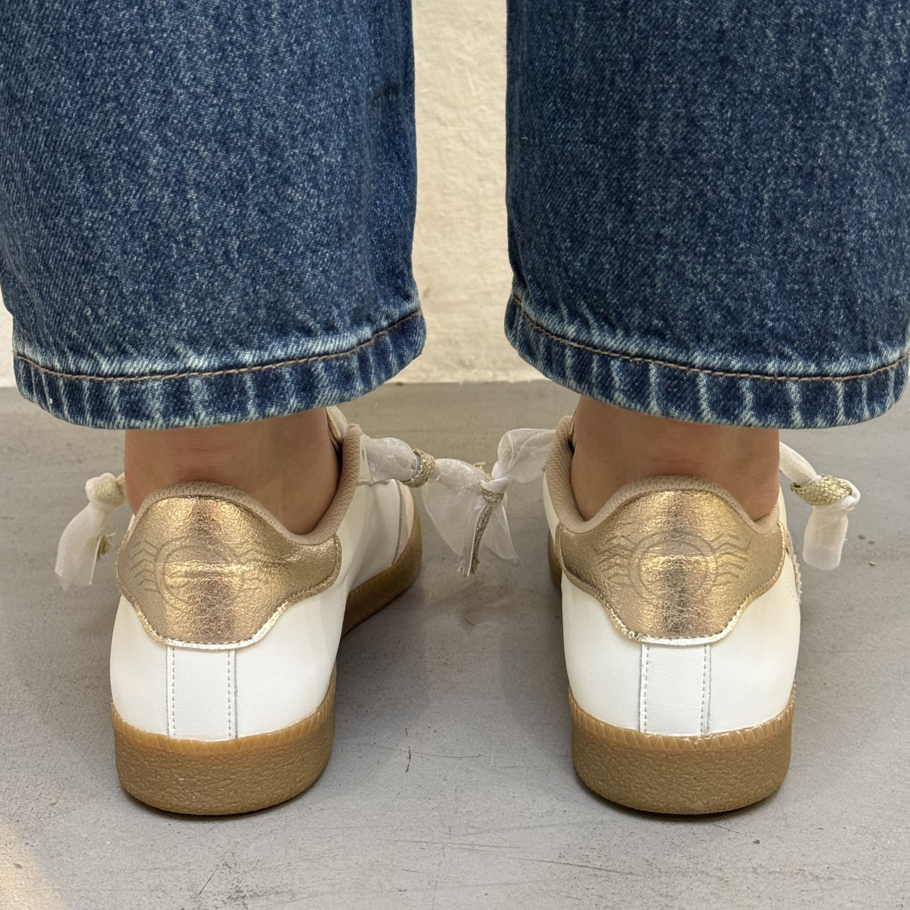 • Lacets en ruban blanc apportant originalité et raffinement.