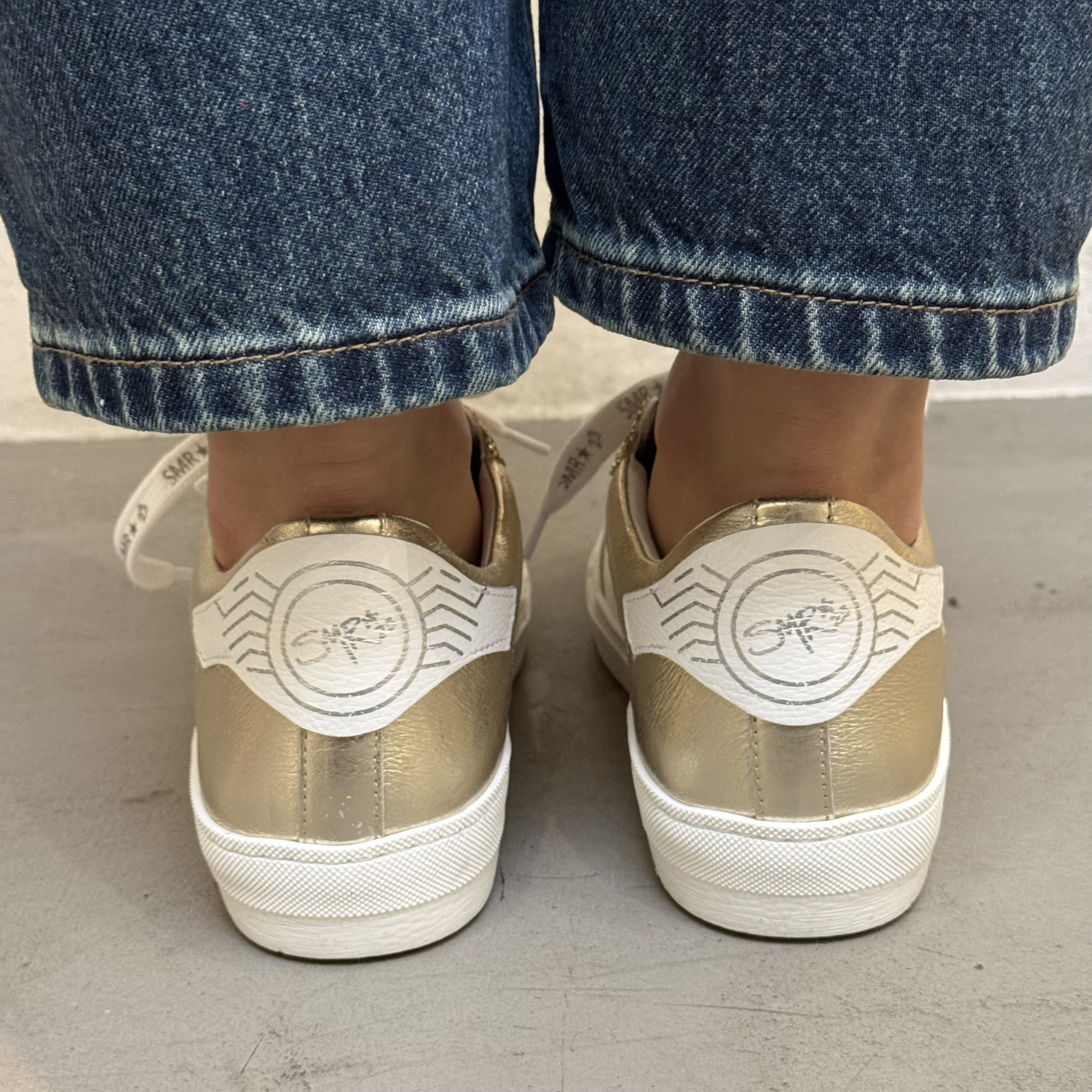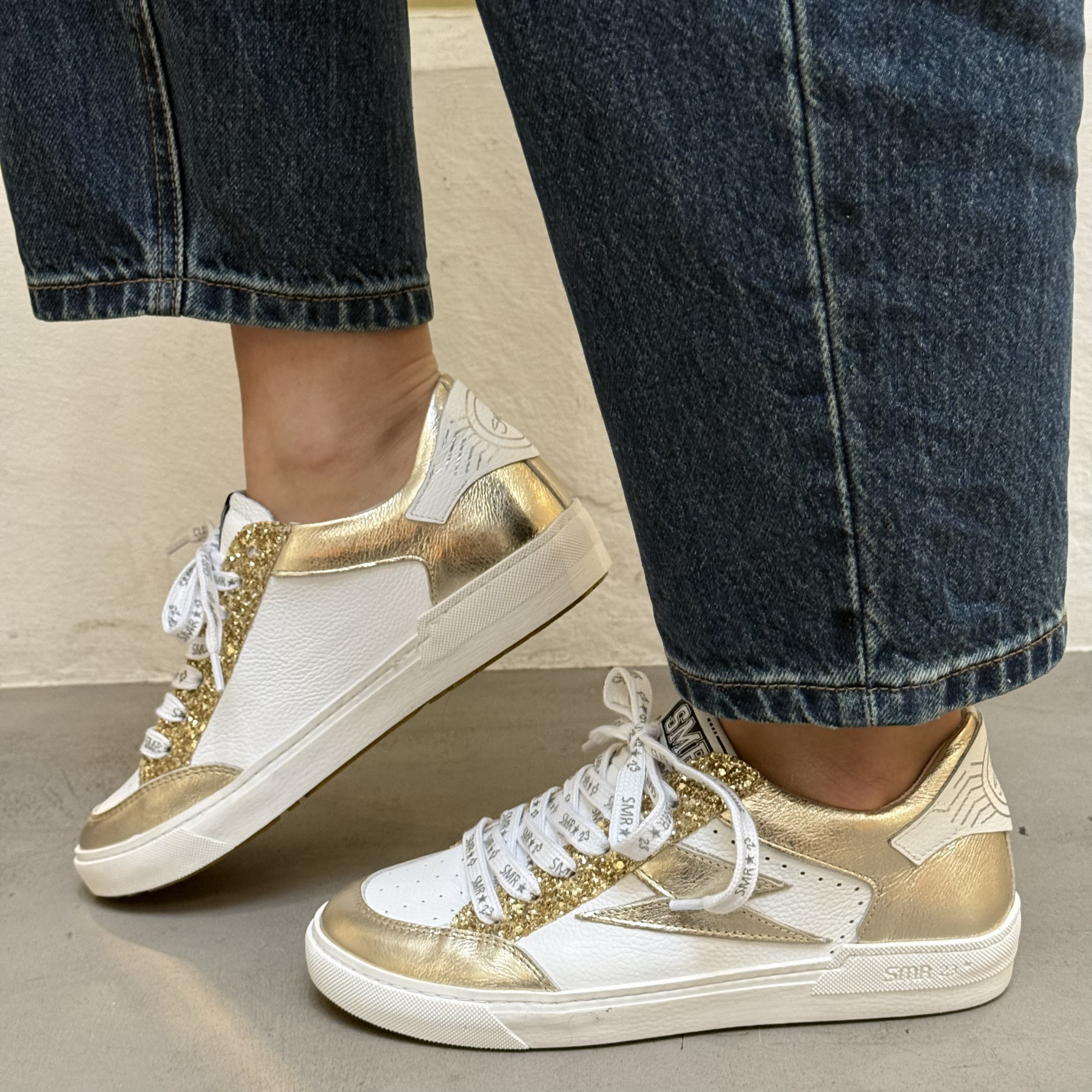 • Lacets blancs siglés SMR 23 pour un look signature.