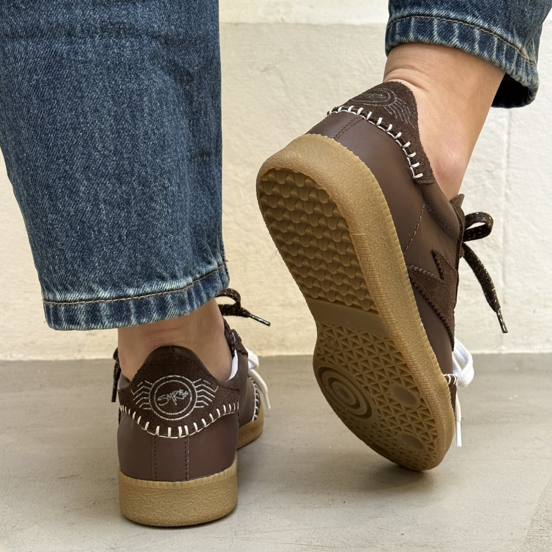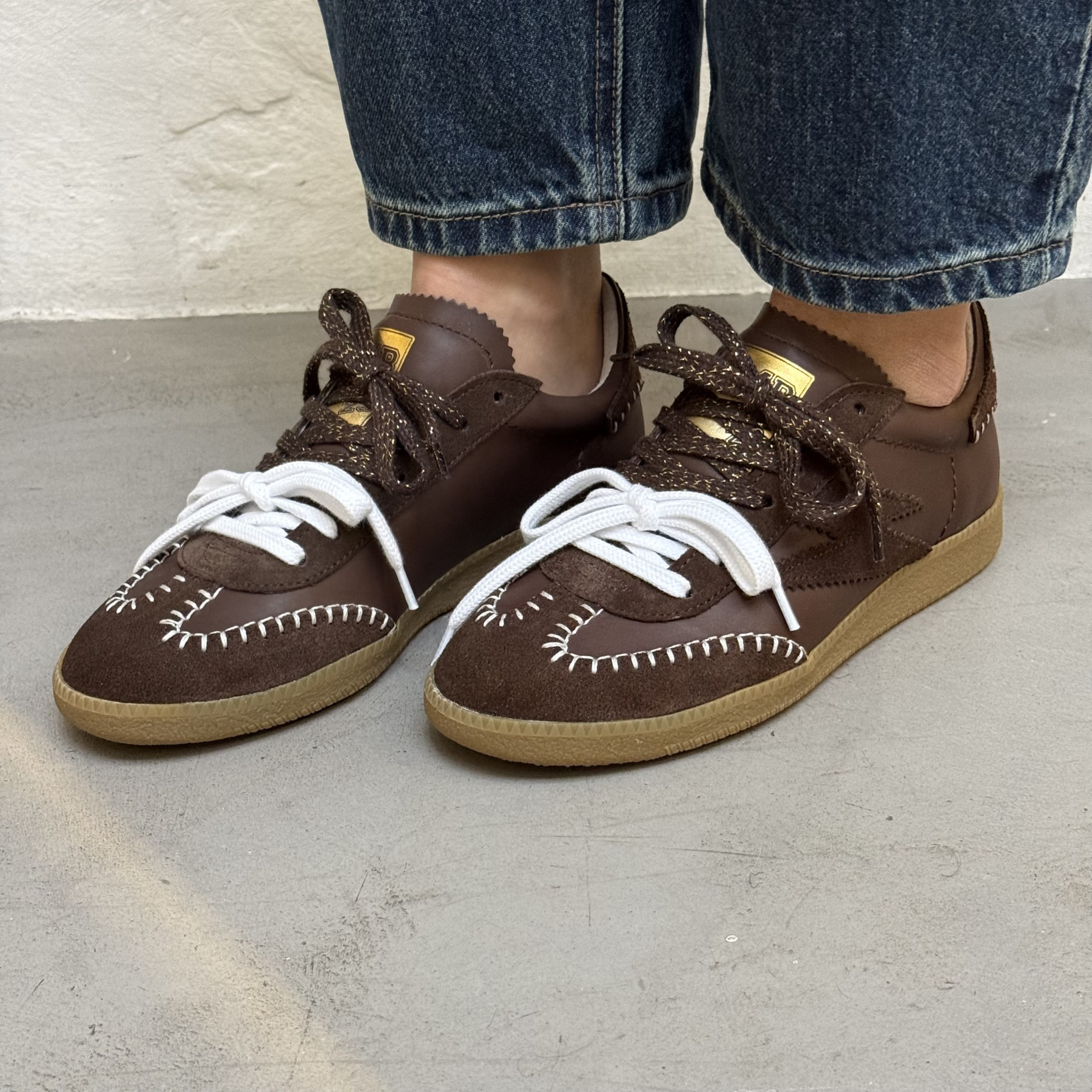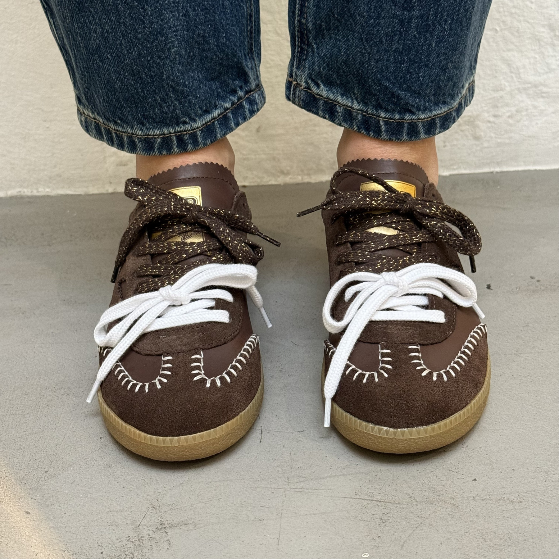 • Double jeu de lacets contrastés blanc et marron pour un look original.