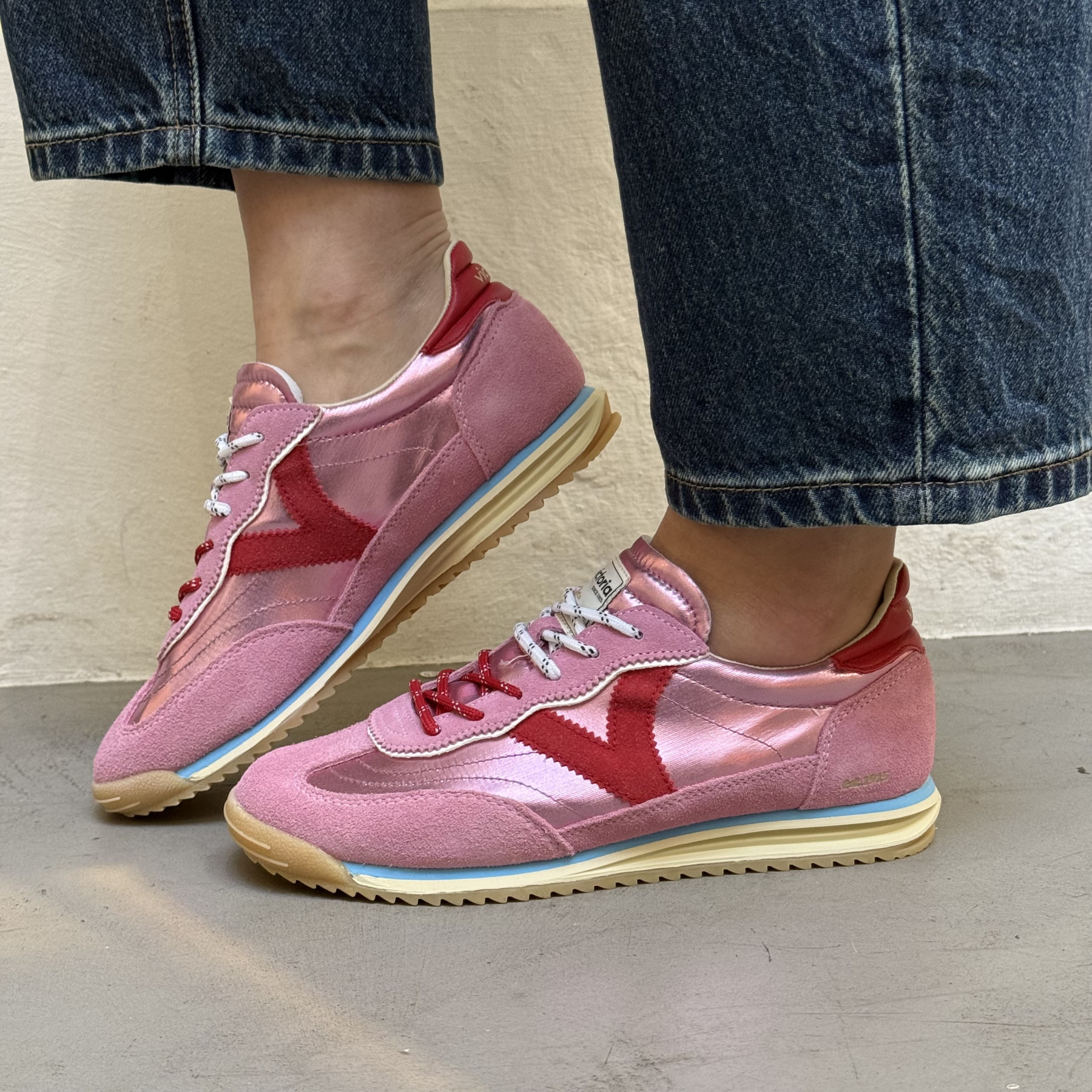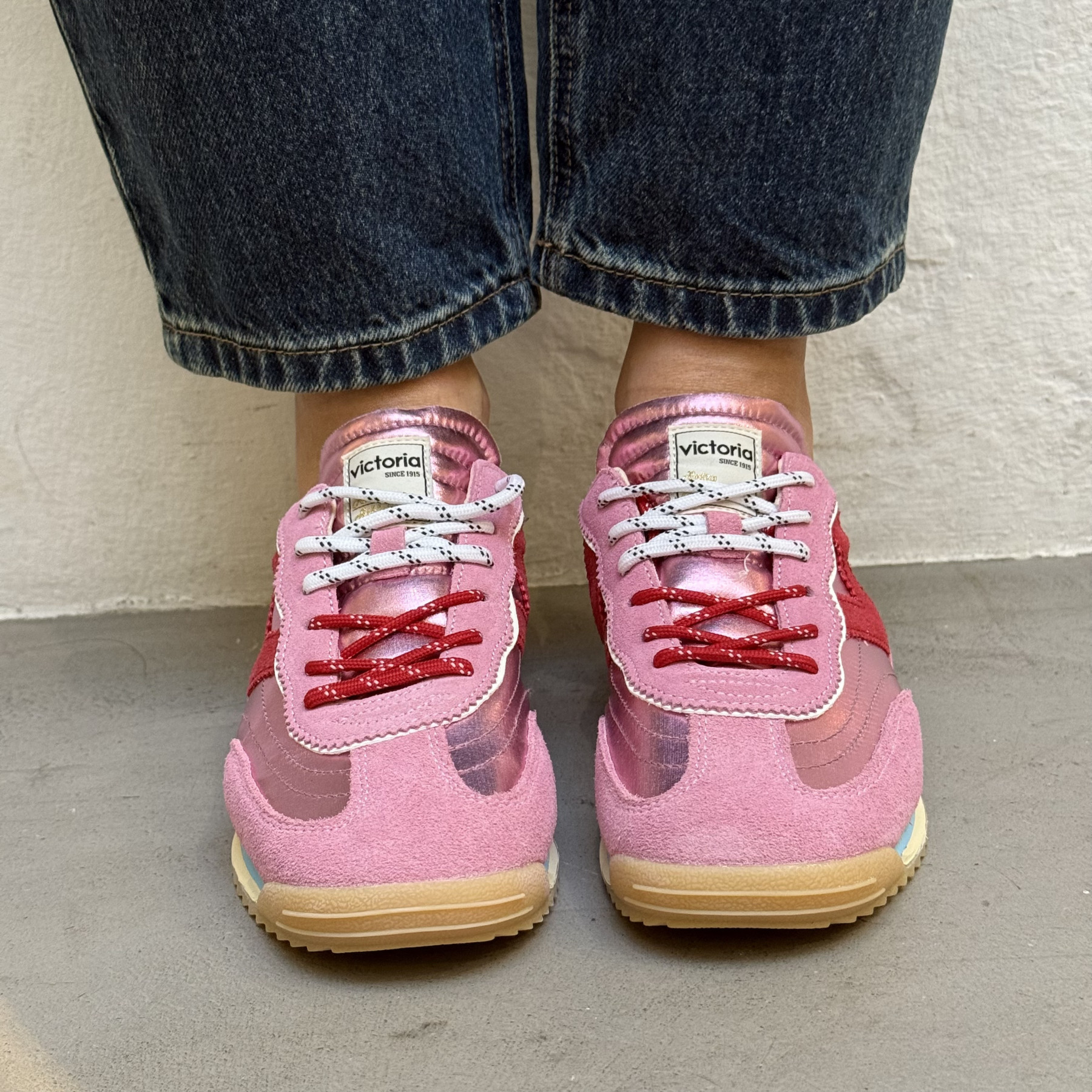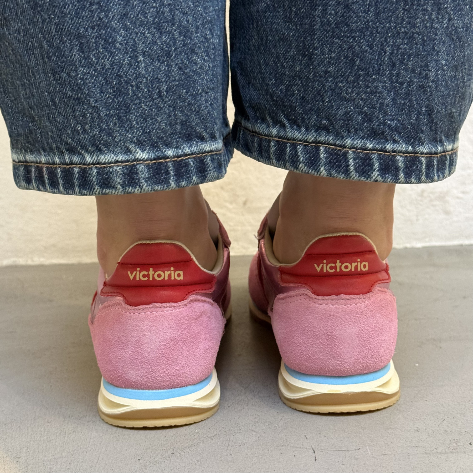 • Baskets Victoria au style rétro iconique, revisitées dans une version rose lumineuse et féminine.