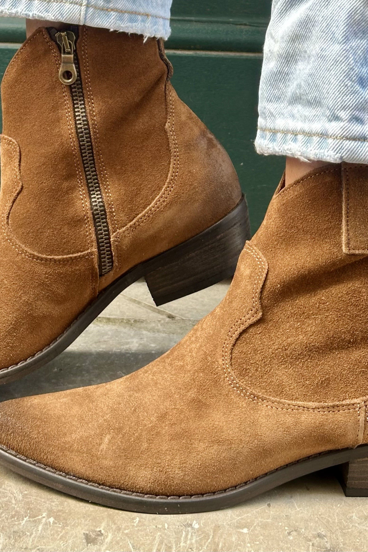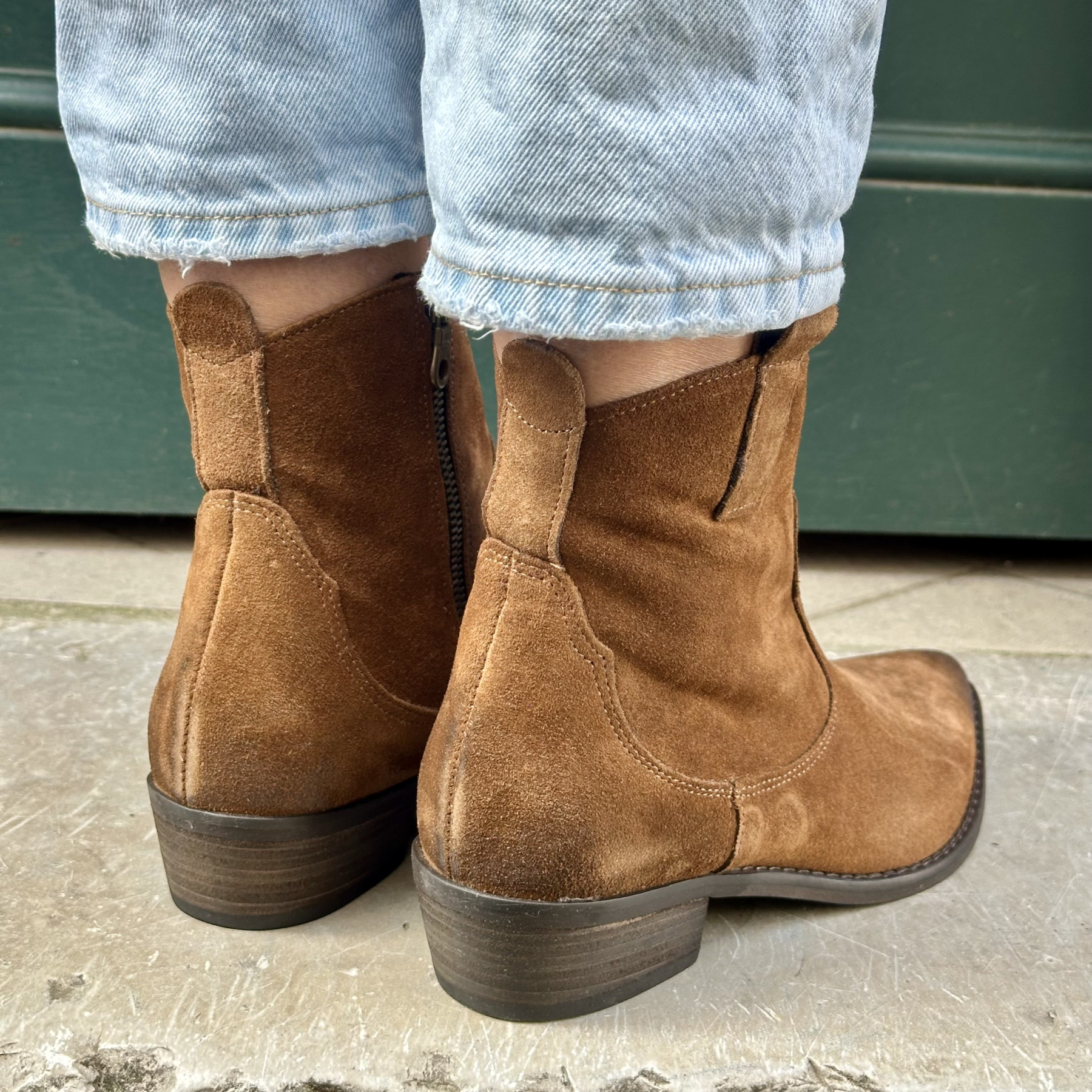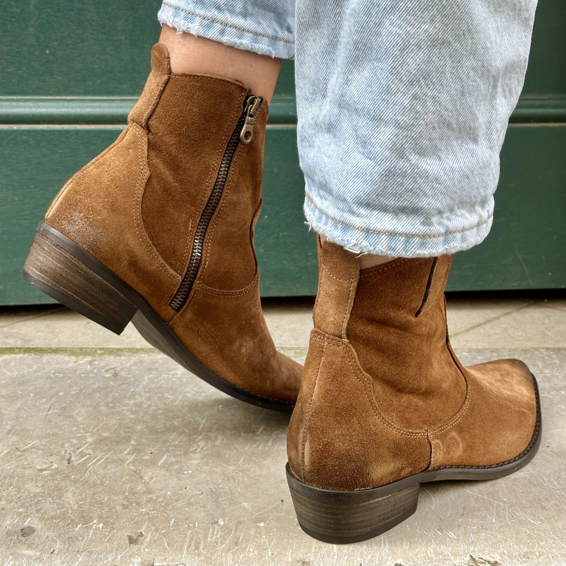• Bottine en cuir suédé camel, au style western chic intemporel.