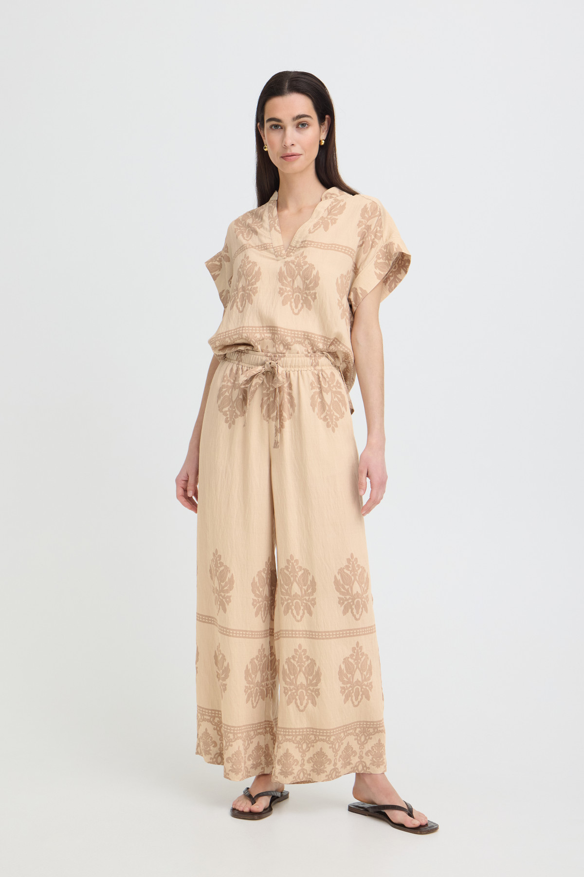 Pantalon large à taille élastiquée avec cordon de serrage, orné de motifs imprimés élégants. Sa coupe fluide et sa matière légère assurent un confort optimal, tandis que son design raffiné apporte une touche bohème chic, idéale pour les journées ensoleillées.