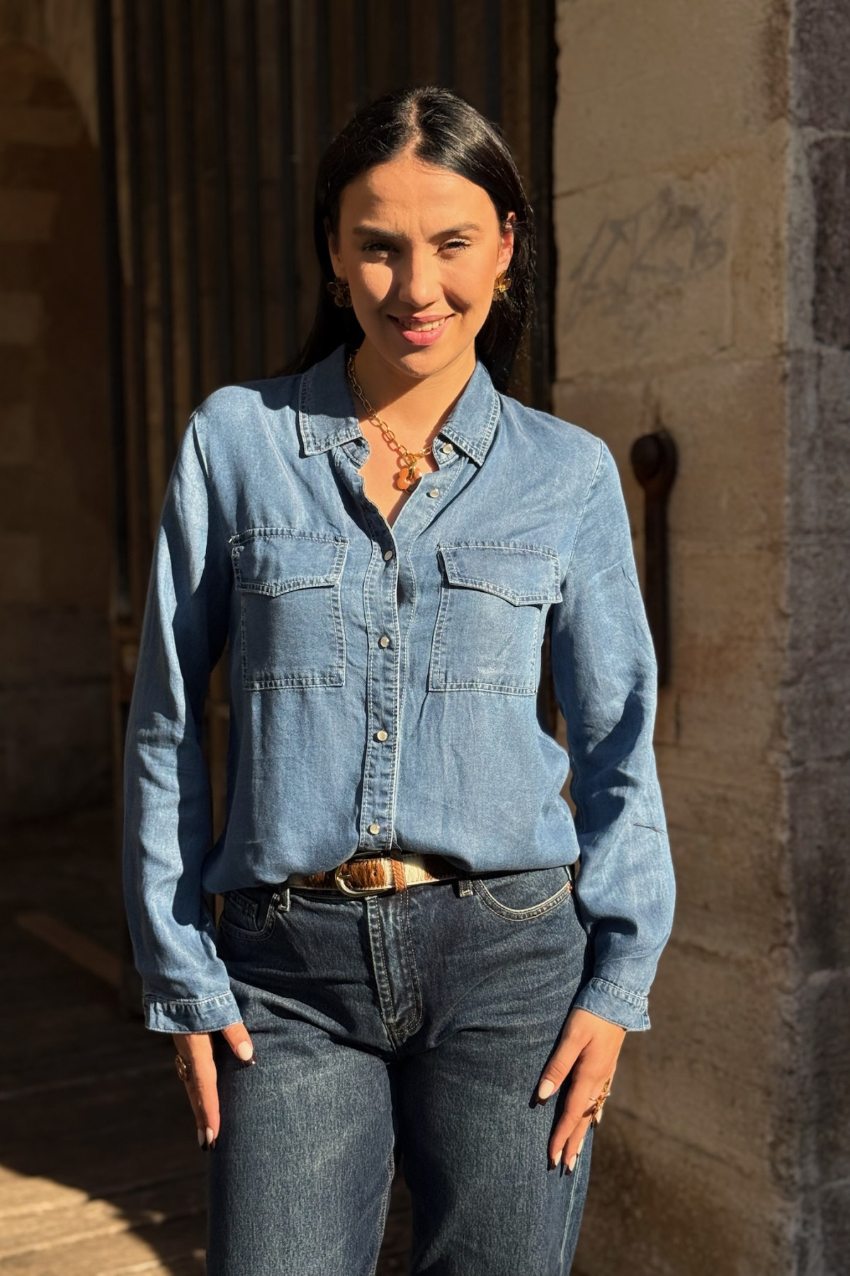 • Chemise en jean à la coupe droite, féminine et décontractée.