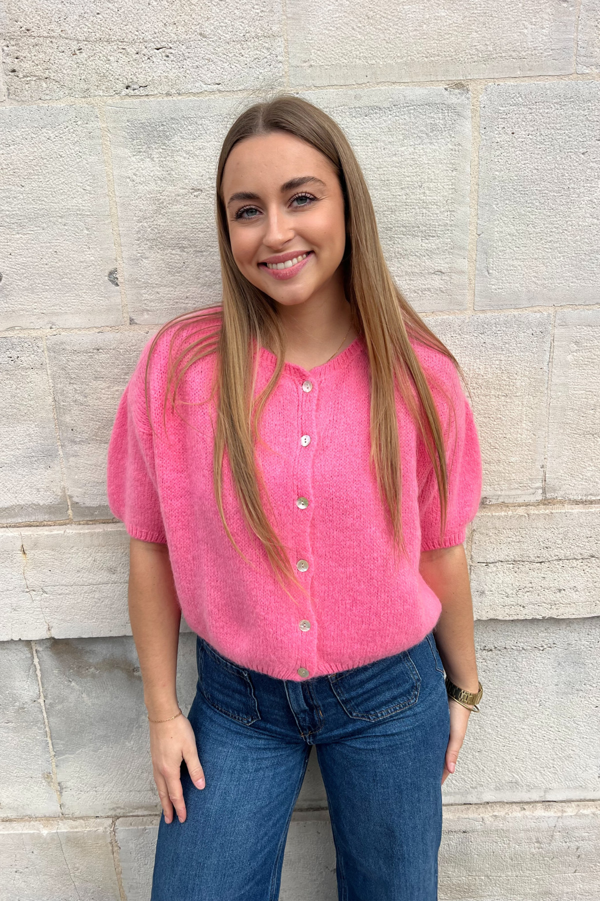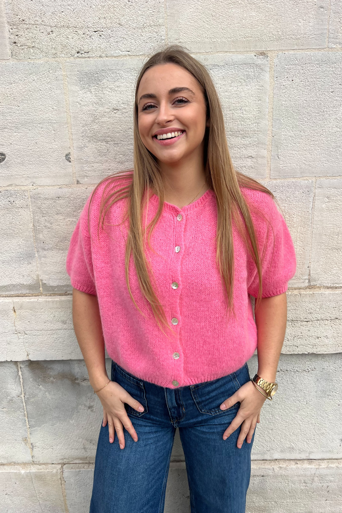 chummy gilet lili manches 3/4 rose 7529 2
