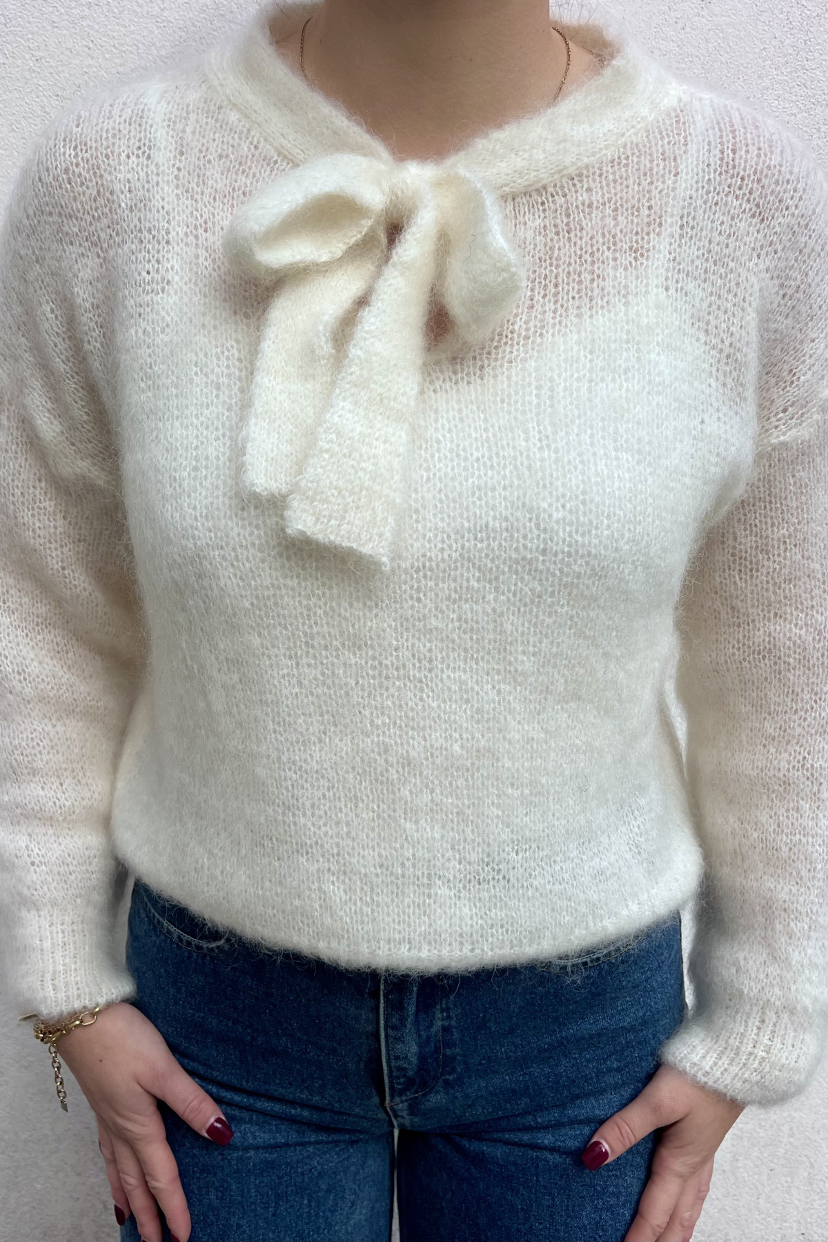 • Détail chic et féminin : grand nœud en maille sur le devant, apportant une touche élégante et raffinée.
