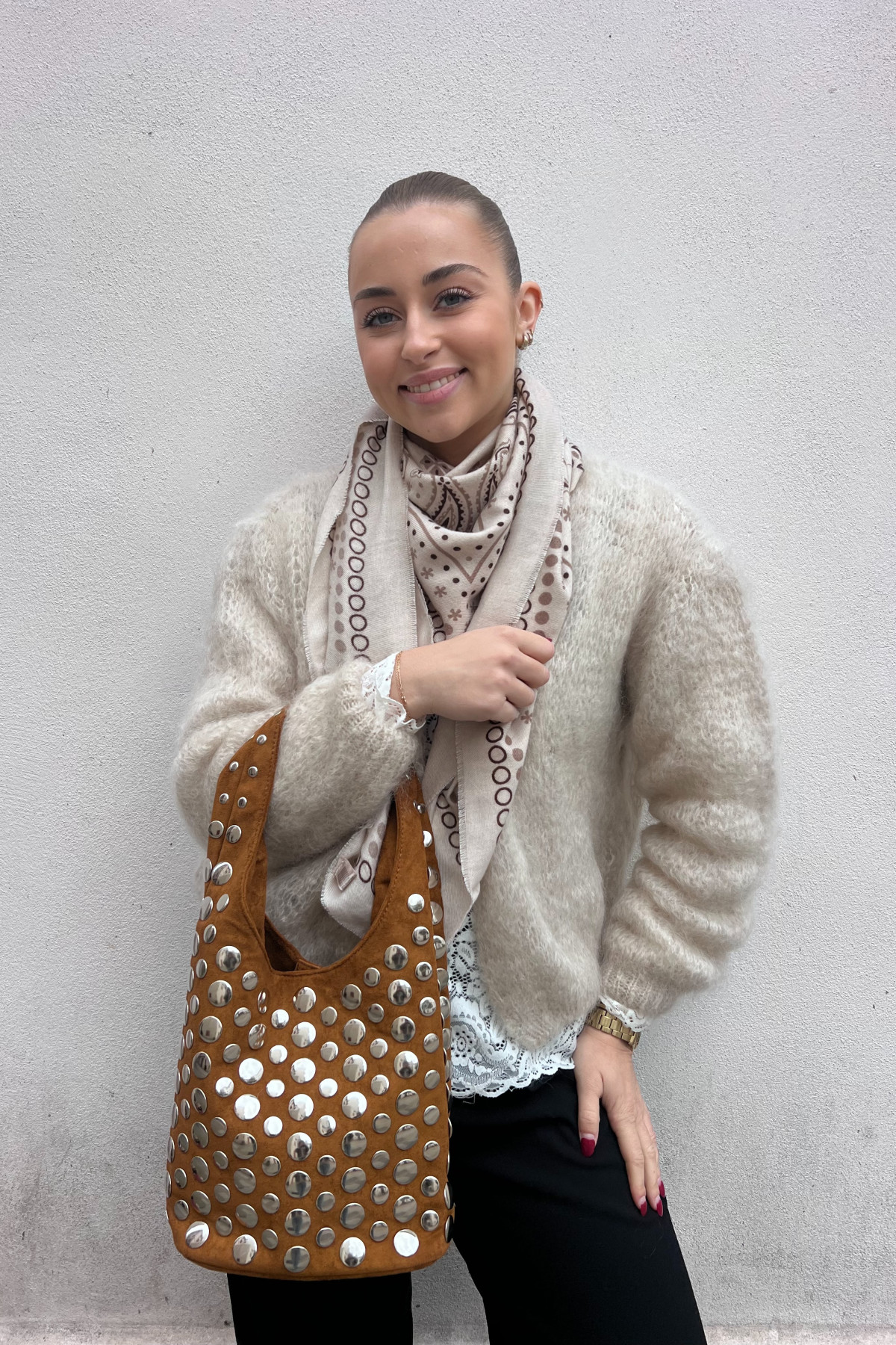 chummy sac en daim camel à gros oeillets métalliques argentés (2)
