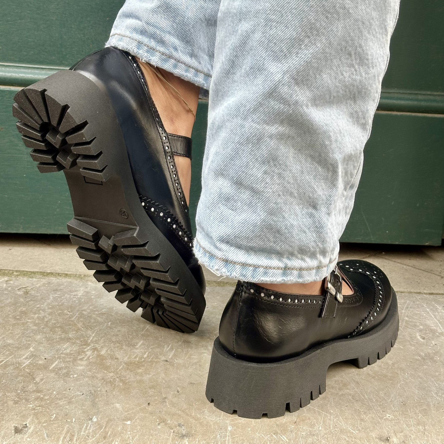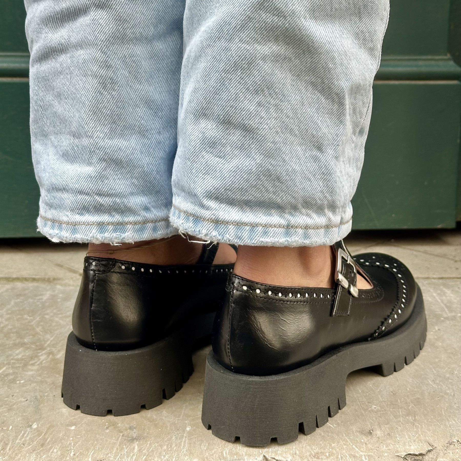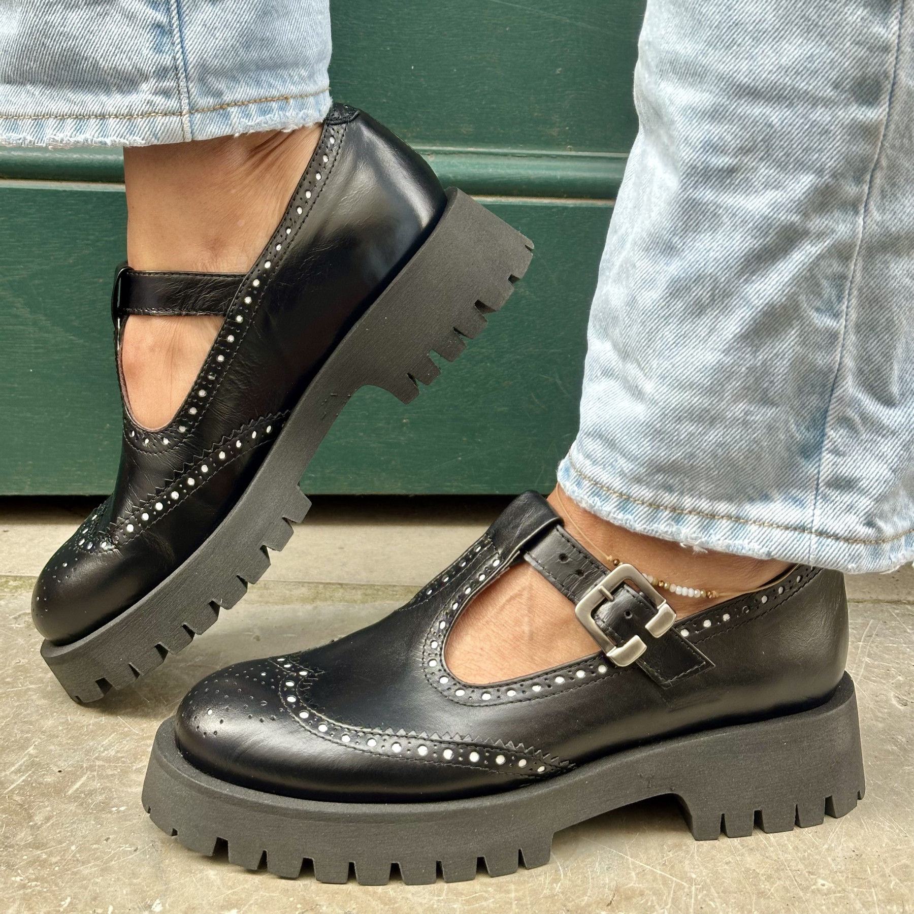• Chaussures à bride en cuir noir, style rétro revisité.