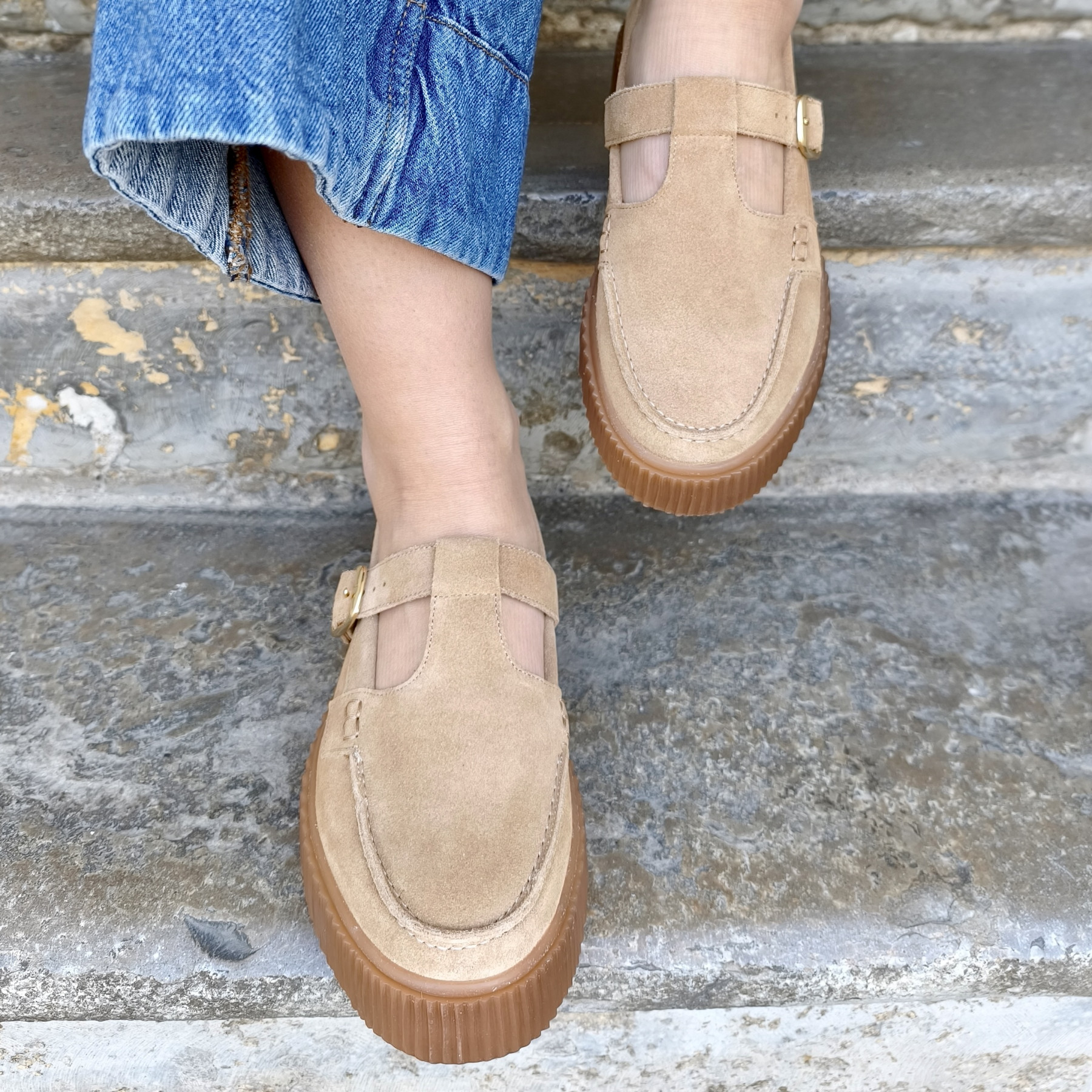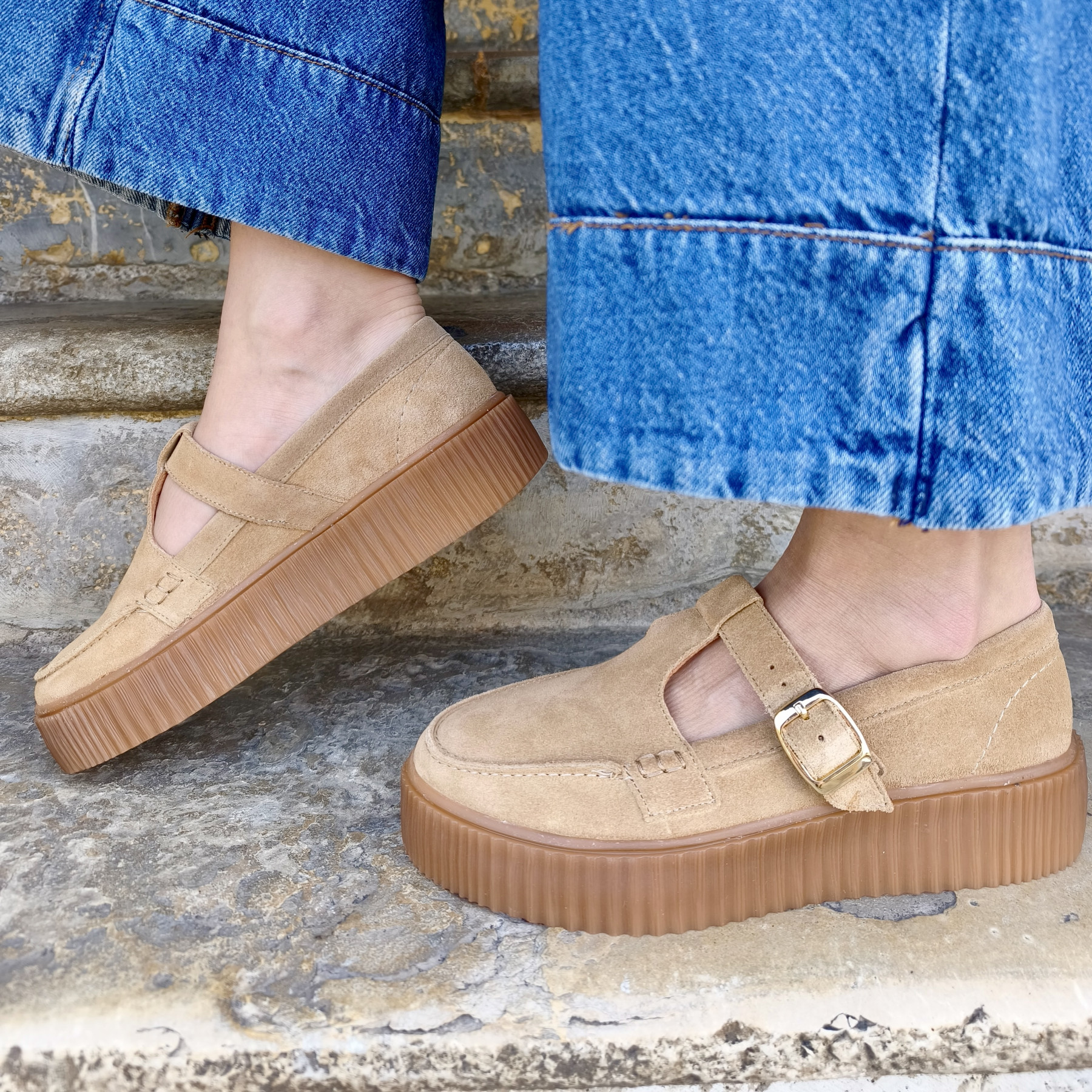 • Semelle plateforme épaisse offrant stabilité, confort et amorti