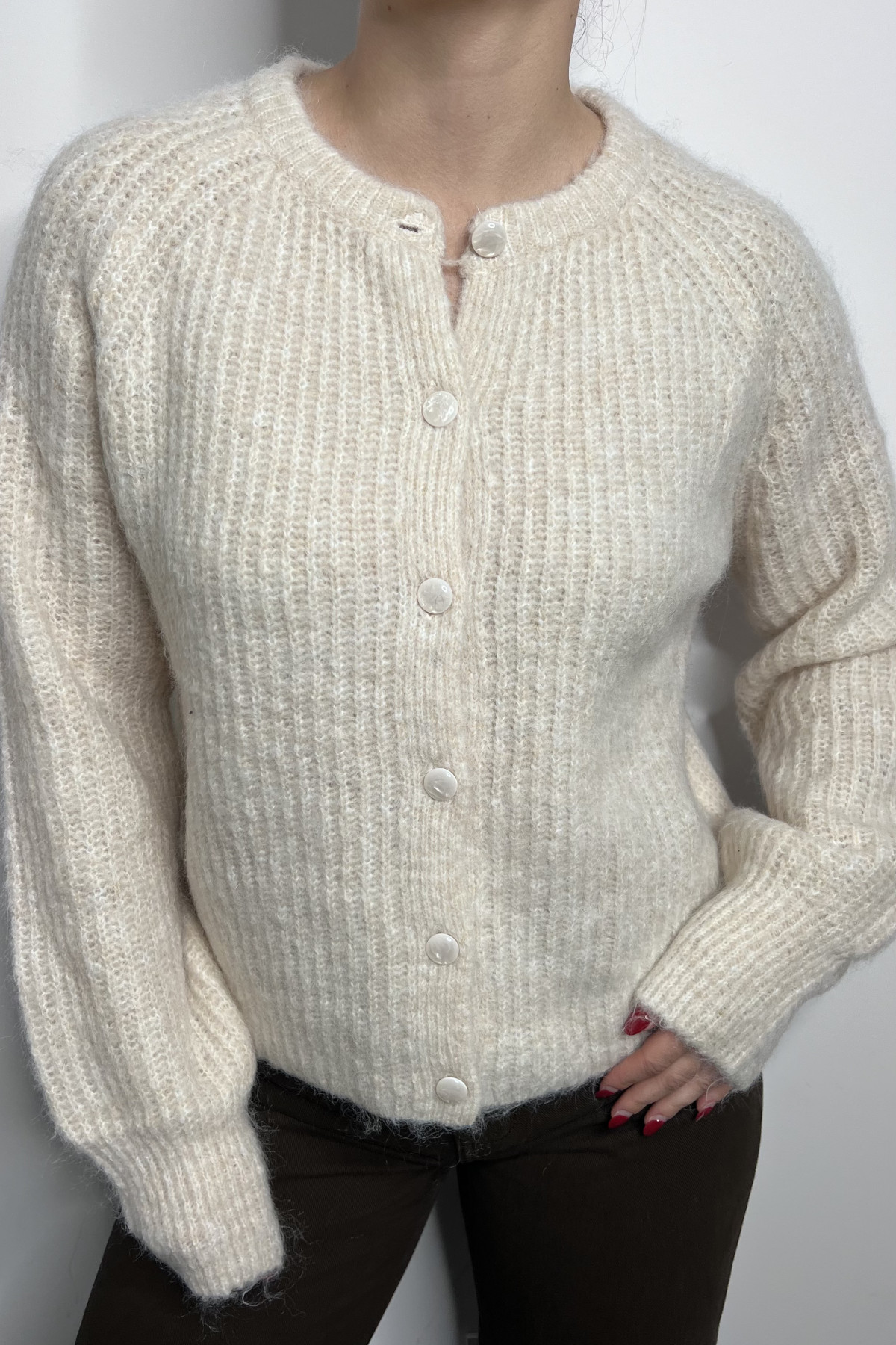 • Gilet en maille douce et duveteuse dans un blanc cassé ultra tendance.