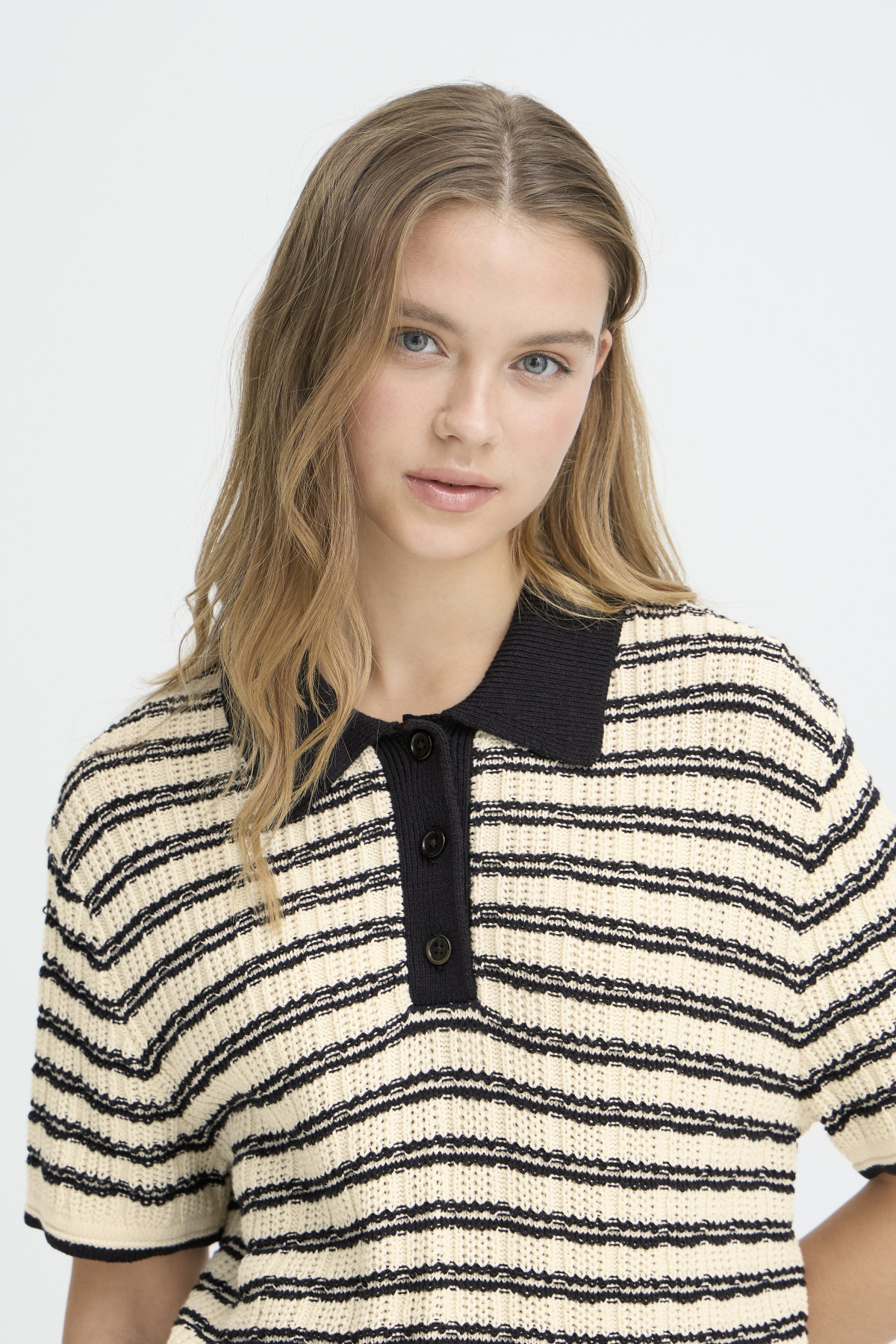 • Polo femme en maille signé Ichi, au style chic et contemporain.
