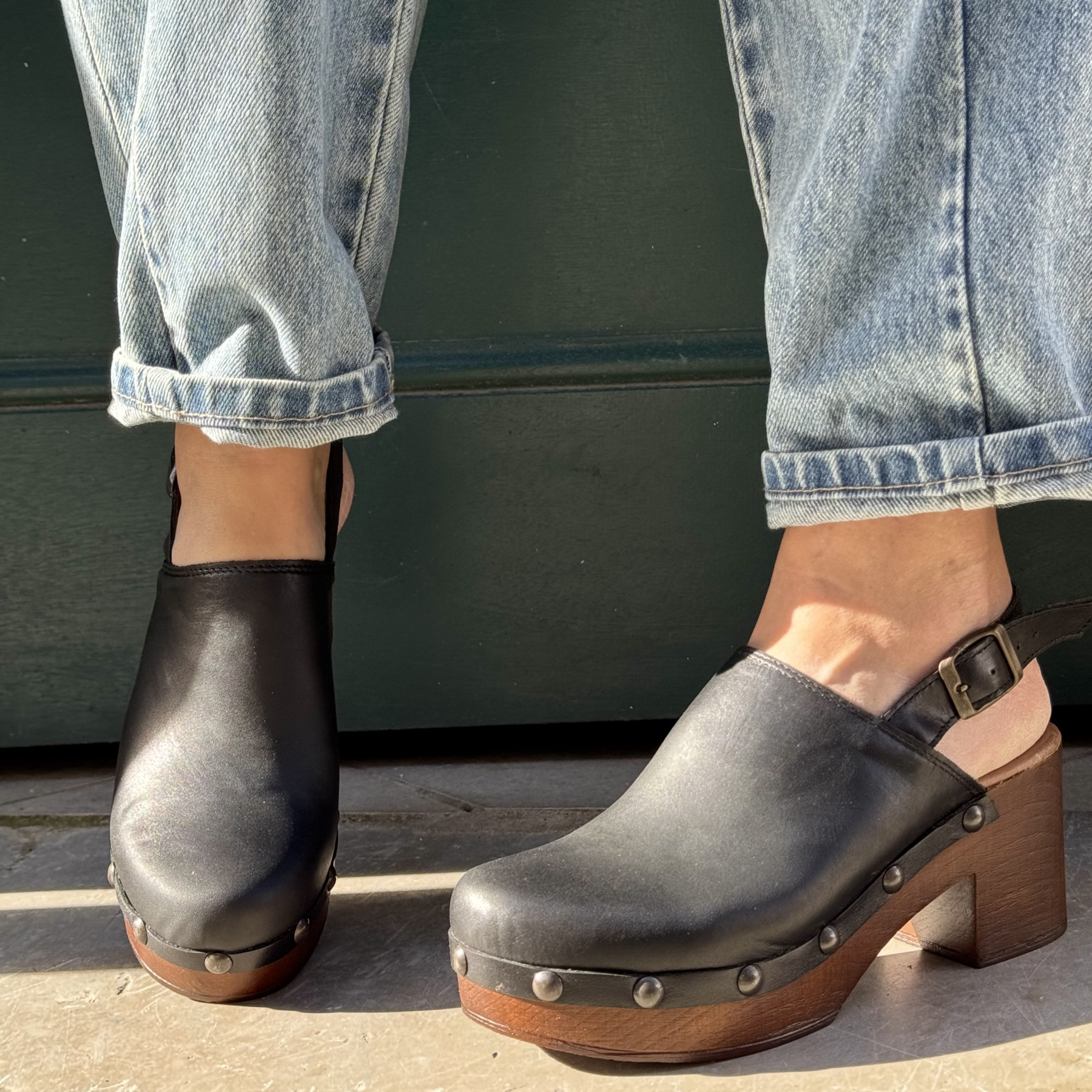 LES SABOTS DE CARO EIVISSA CUIR NOIR