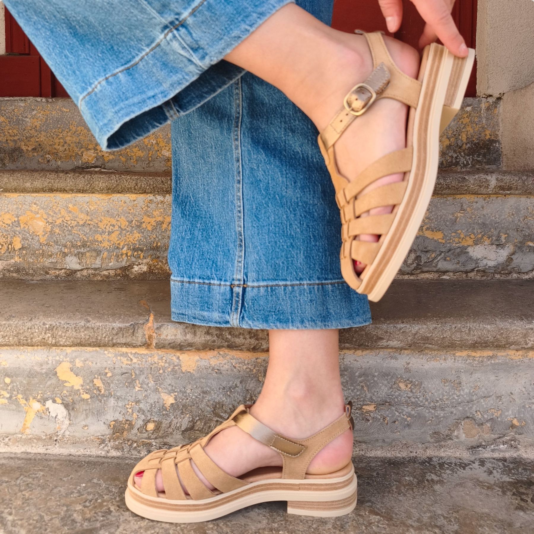 Idéales avec un jean, une robe fluide ou un short, ces sandales allient style et confort pour un look casual chic tout l’été. Une pièce incontournable pour une allure féminine et actuelle.