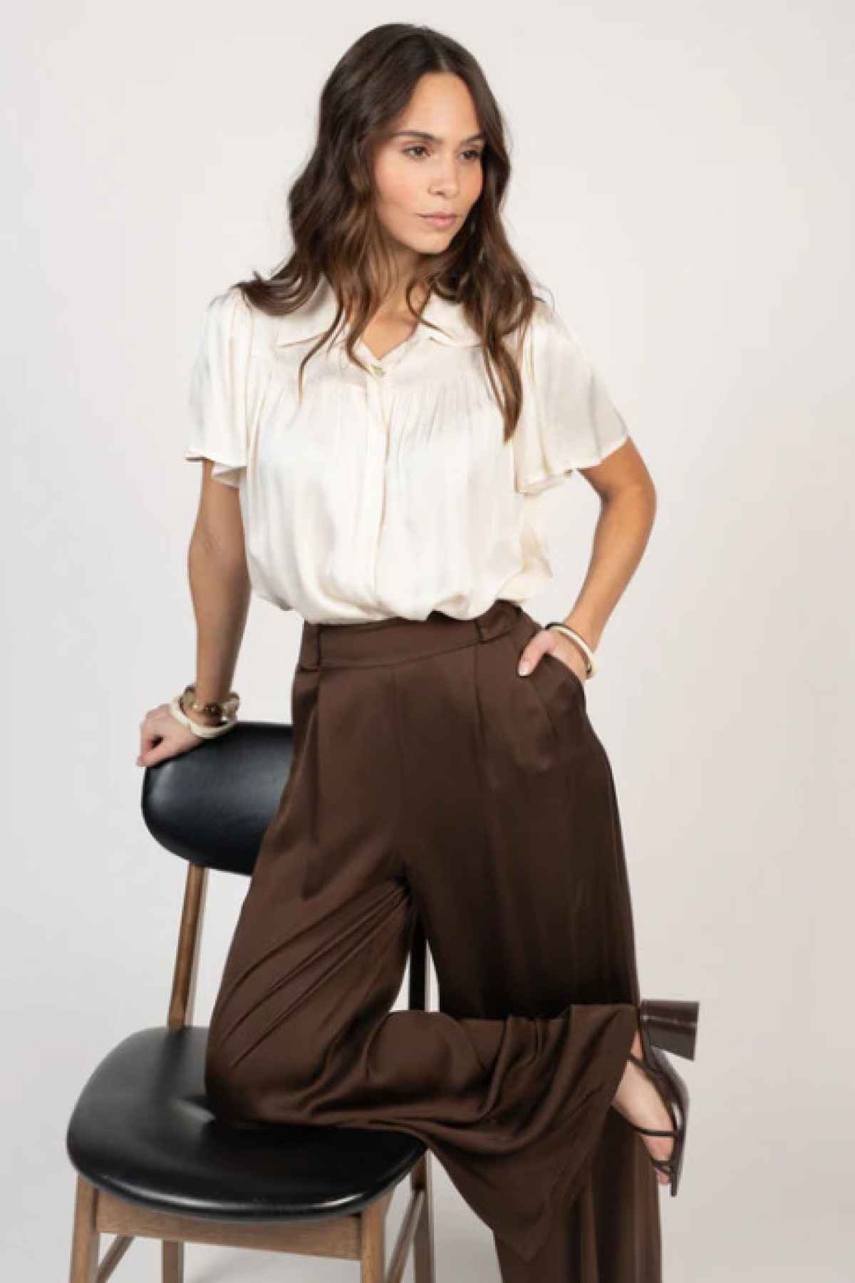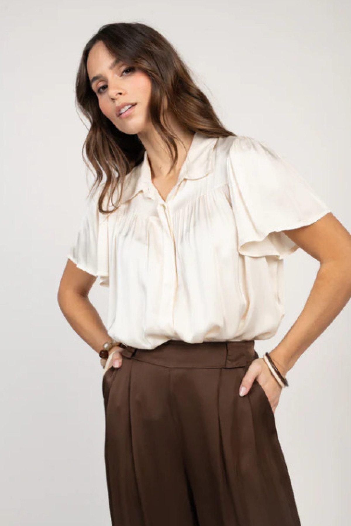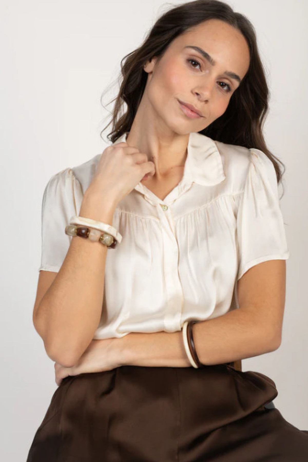 PAKO LITTO CHEMISIER SATINÉ ÉVANGÉLINA ECRU