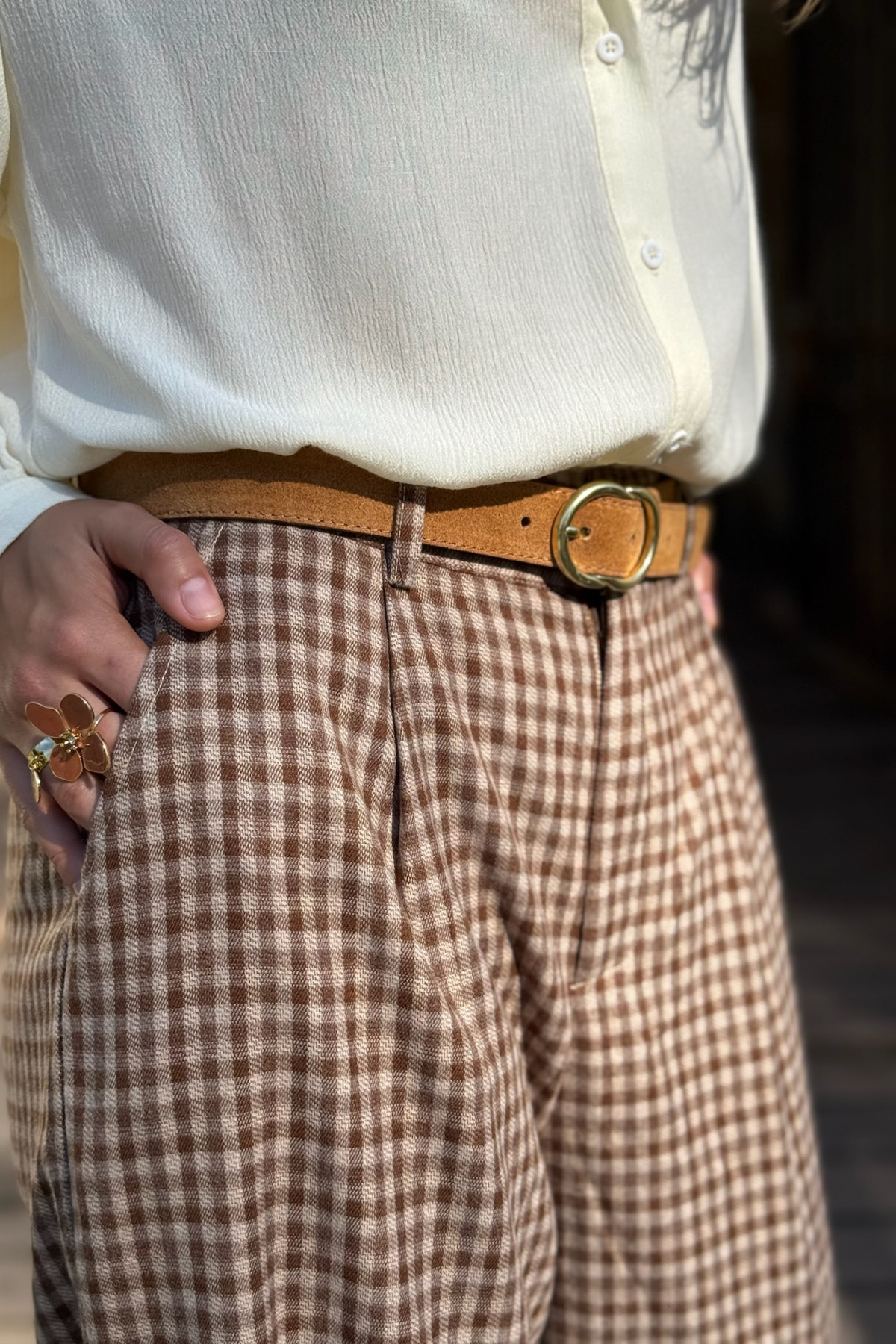 • Pantalon large à carreaux, style rétro revisité par The Korner.
