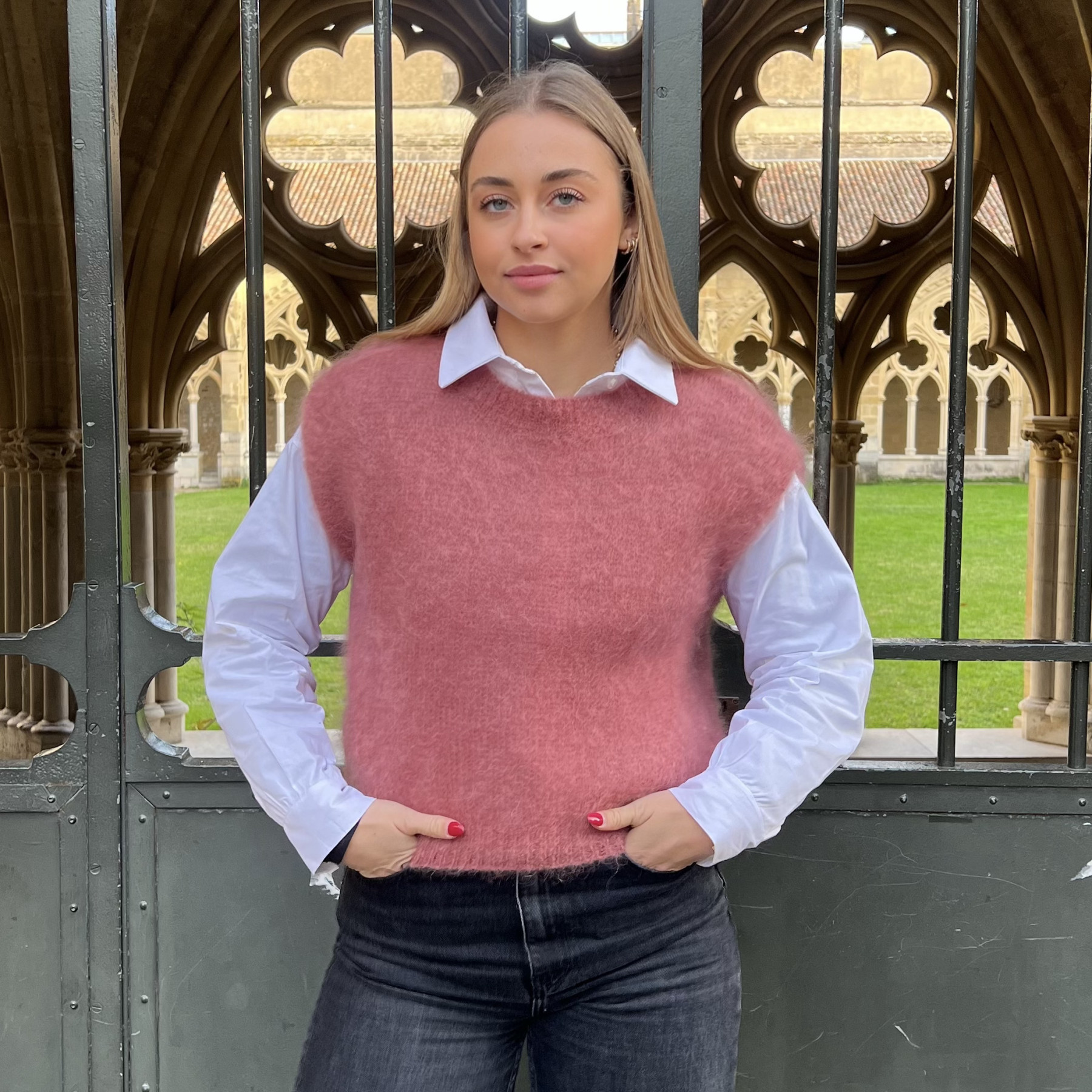 CHUMMY PULL MOHAIR SANS MANCHES ROSE POUDRÉ