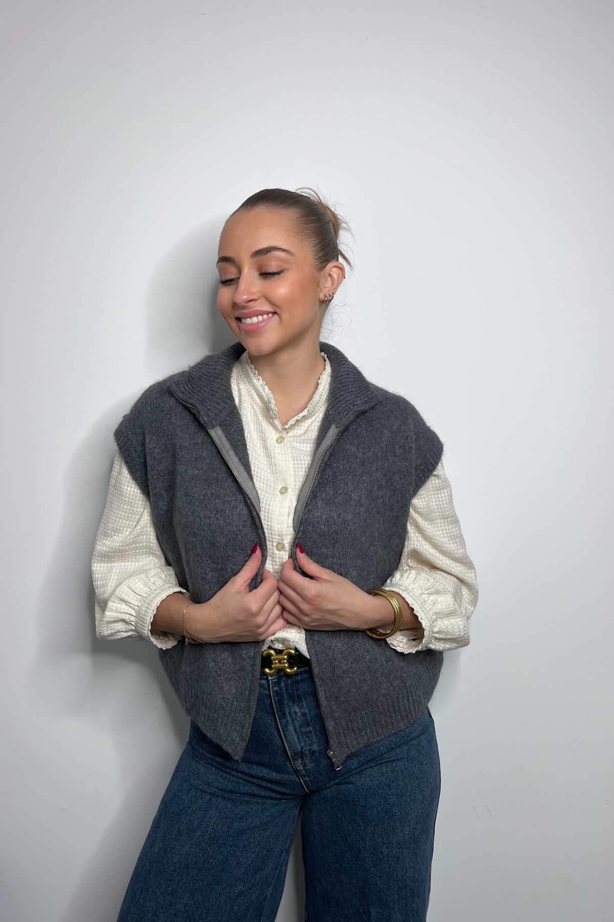 • Gilet sans manches en maille douce signé INTUITION, dans un gris profond et élégant.