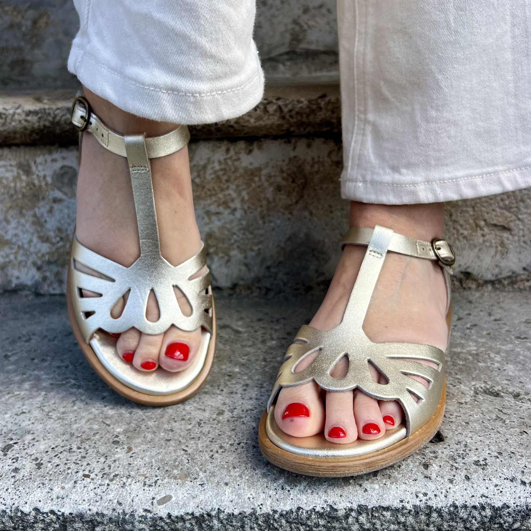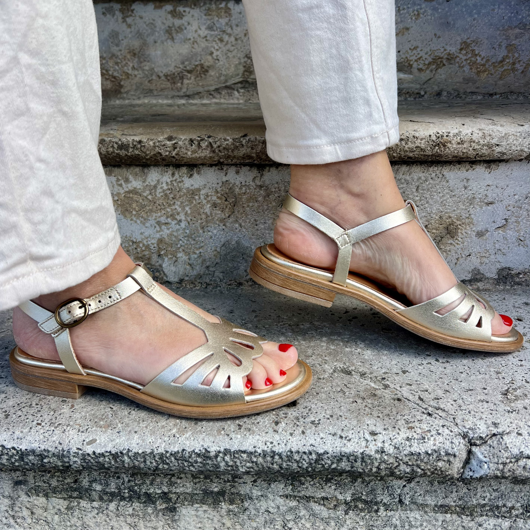 • Sandales couleur or au style élégant et lumineux