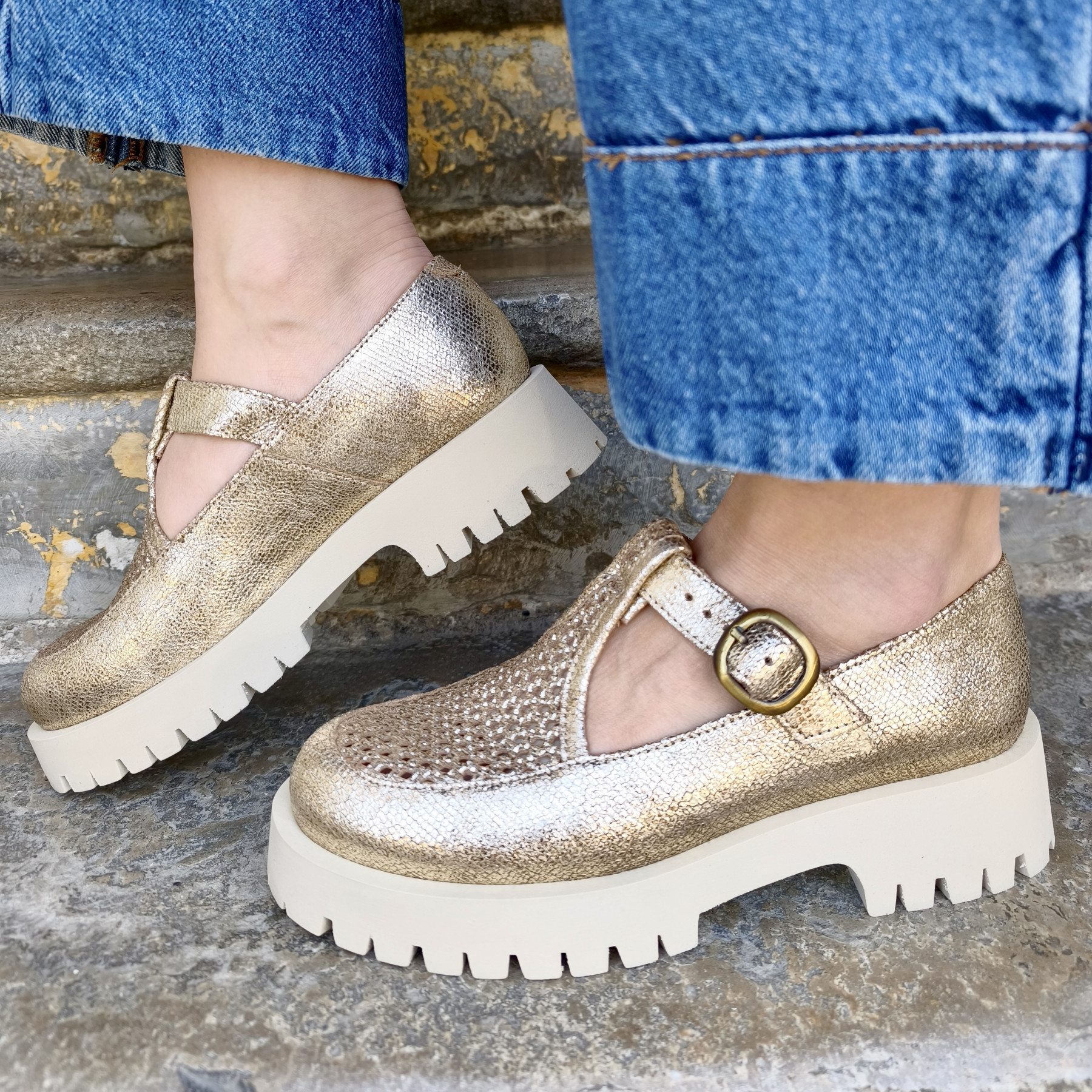 • Semelle plateforme épaisse et crantée pour plus de stabilité et de confort