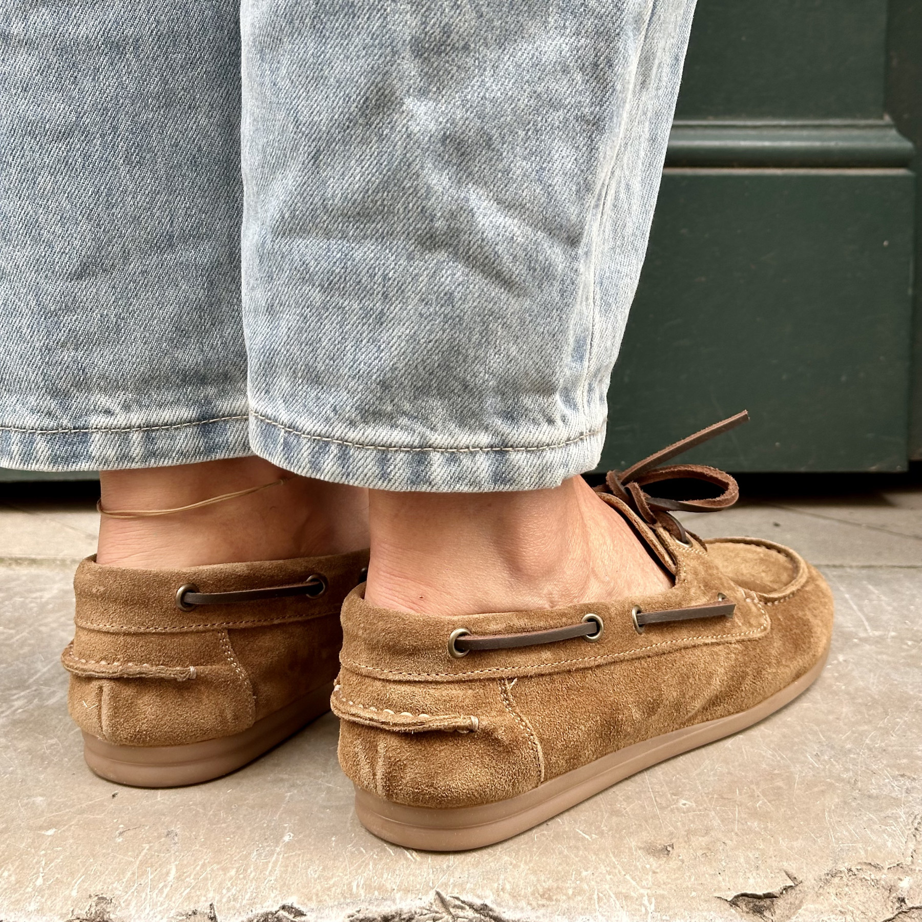 Tige : cuir suédé camel.