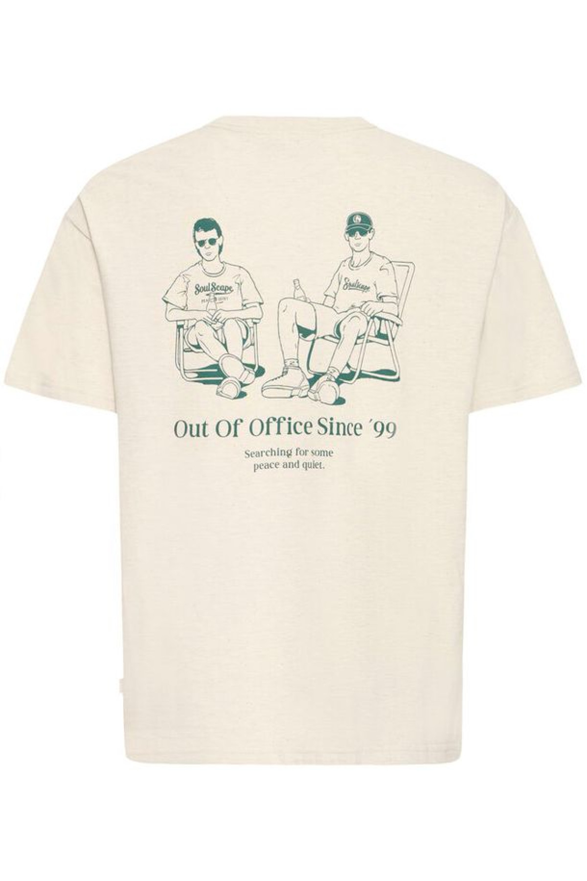 • T-shirt  de couleur beige chiné avec ecritures vertes sur le devant et dans le dos