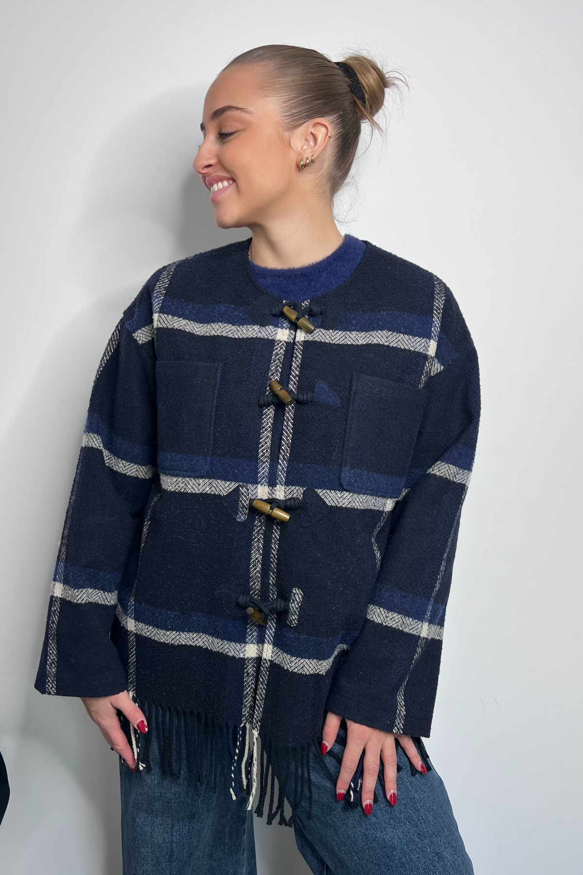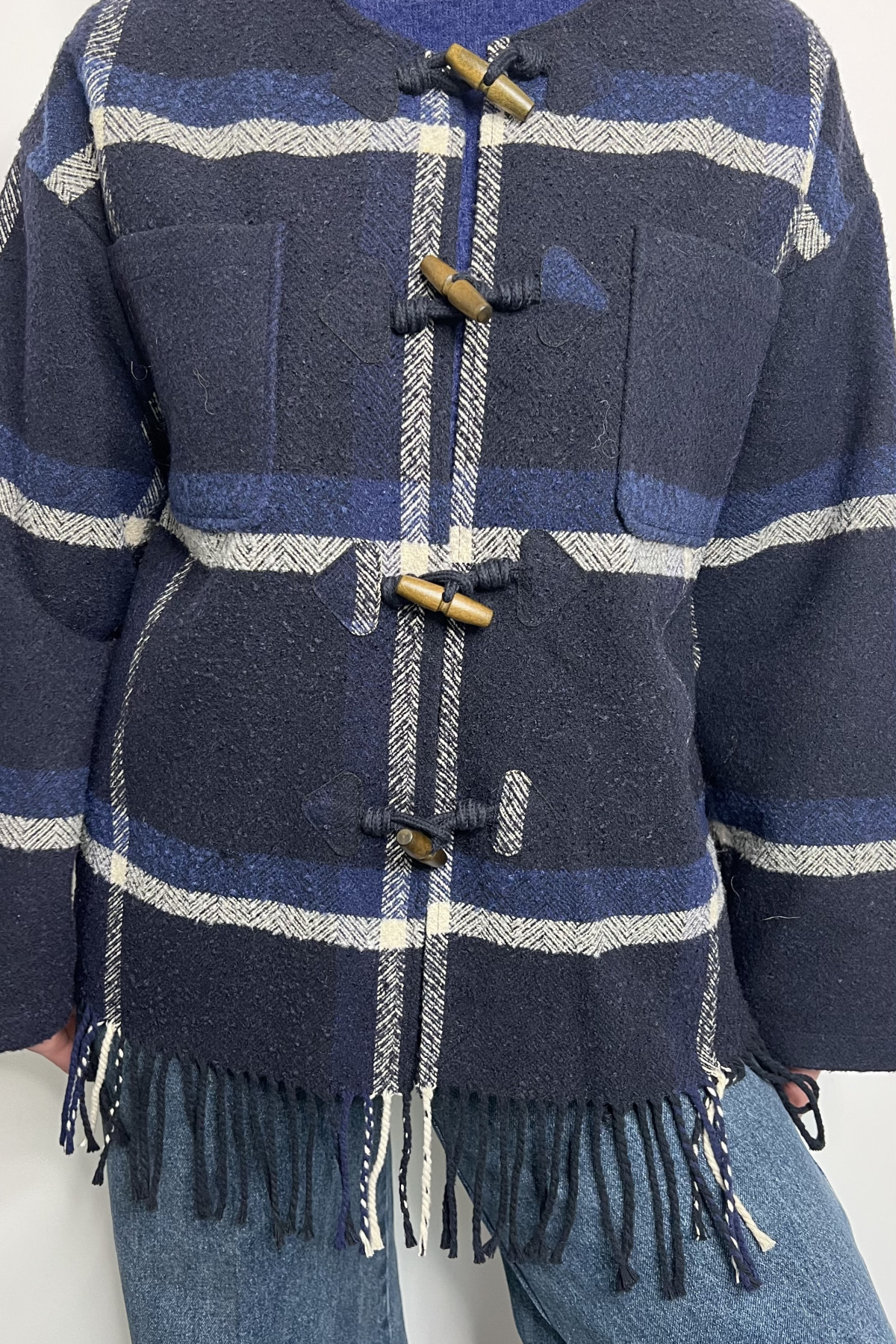 veste à franges à carreaux bleu ichi 20123114 (1)