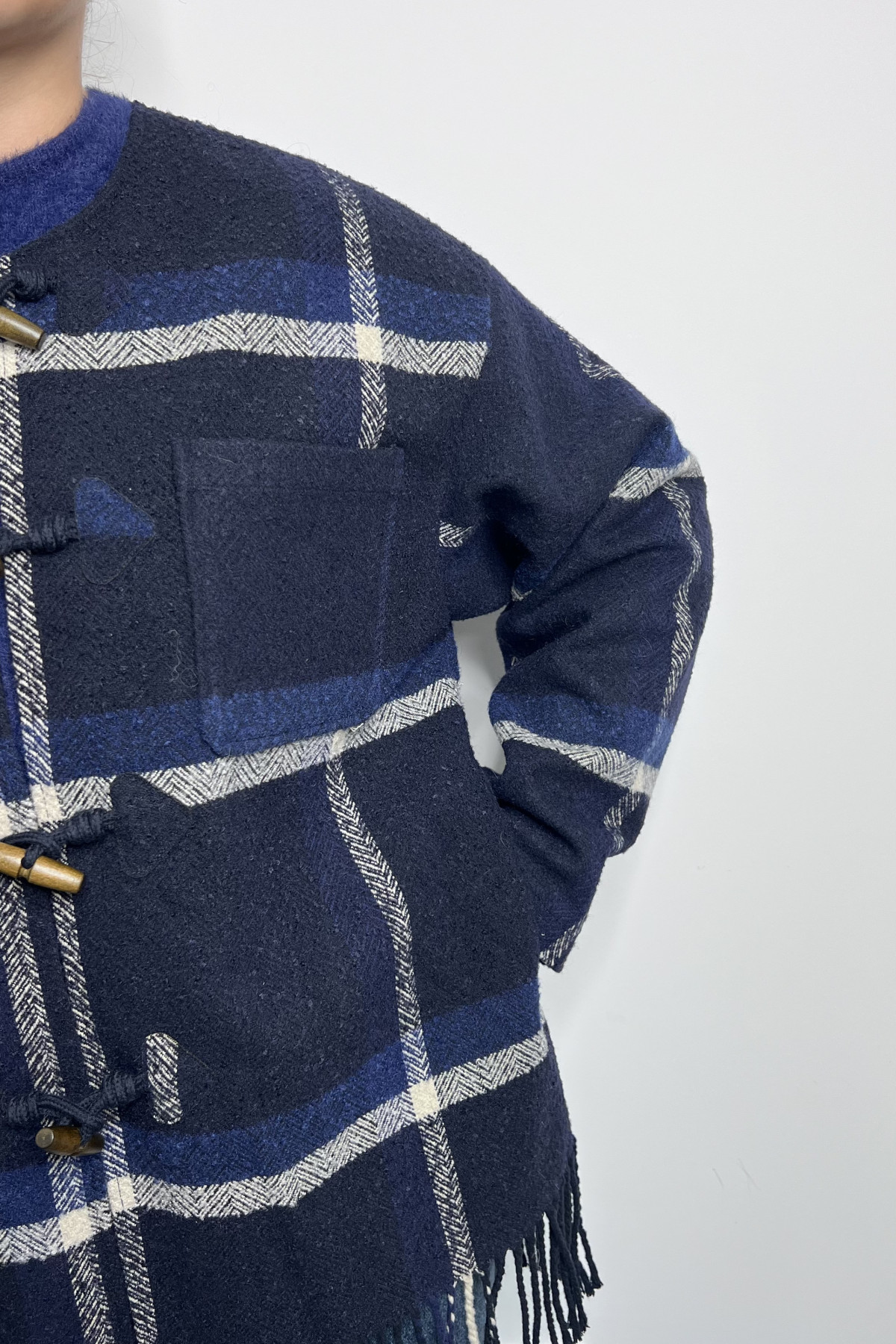 veste à franges à carreaux bleu ichi 20123114 (2)