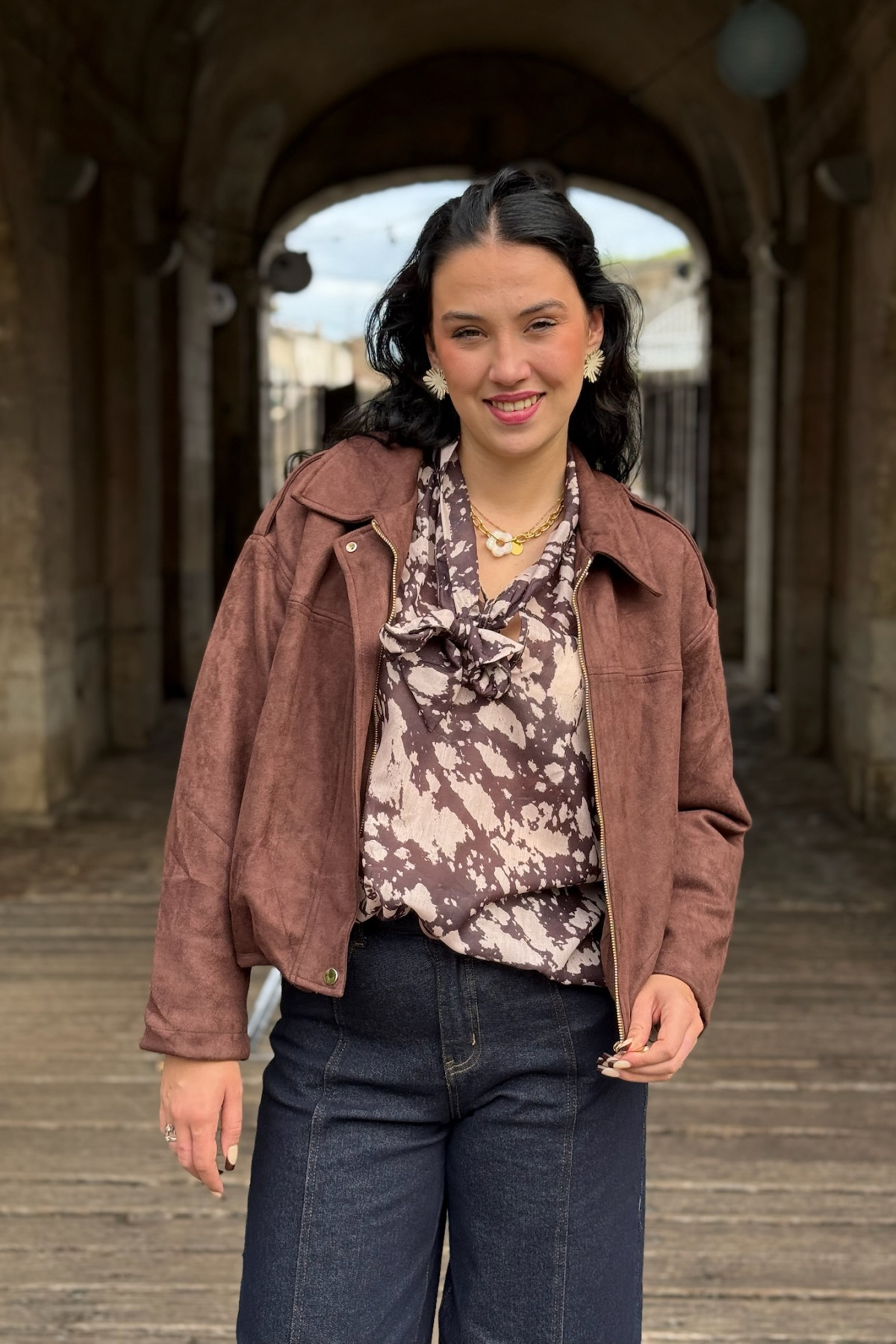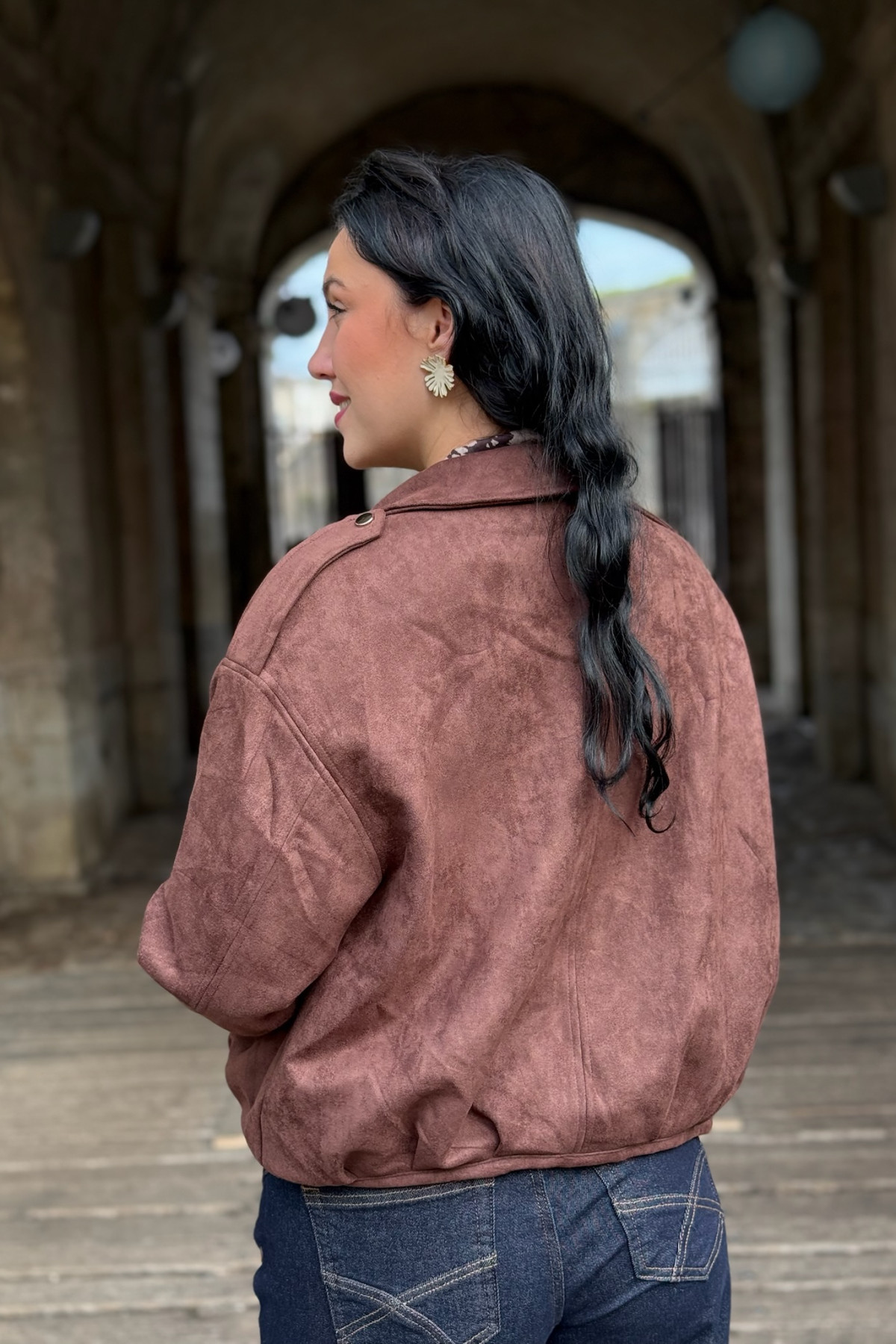 • Veste courte en suédine douce effet daim, élégante et confortable.