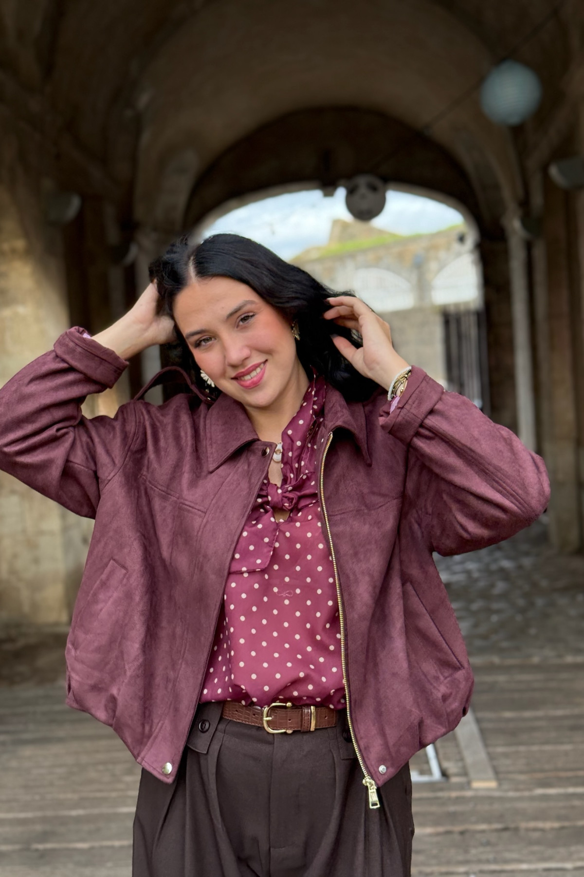 veste en daim col chemise bordeaux assez courte Z032 2