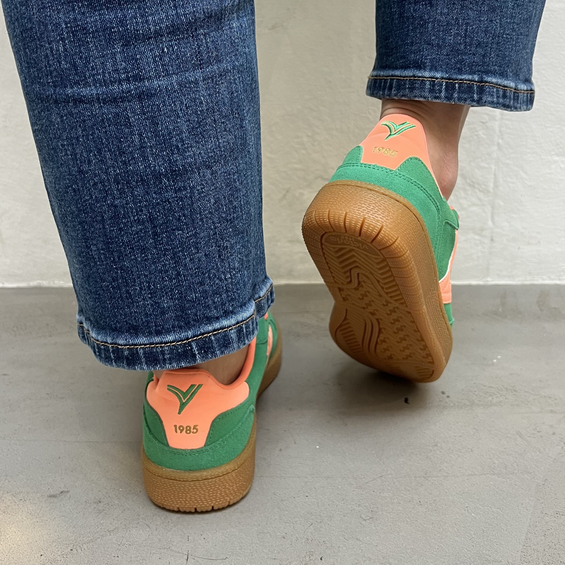 • Lacets bicolores vert et corail, renforçant le style original du modèle.